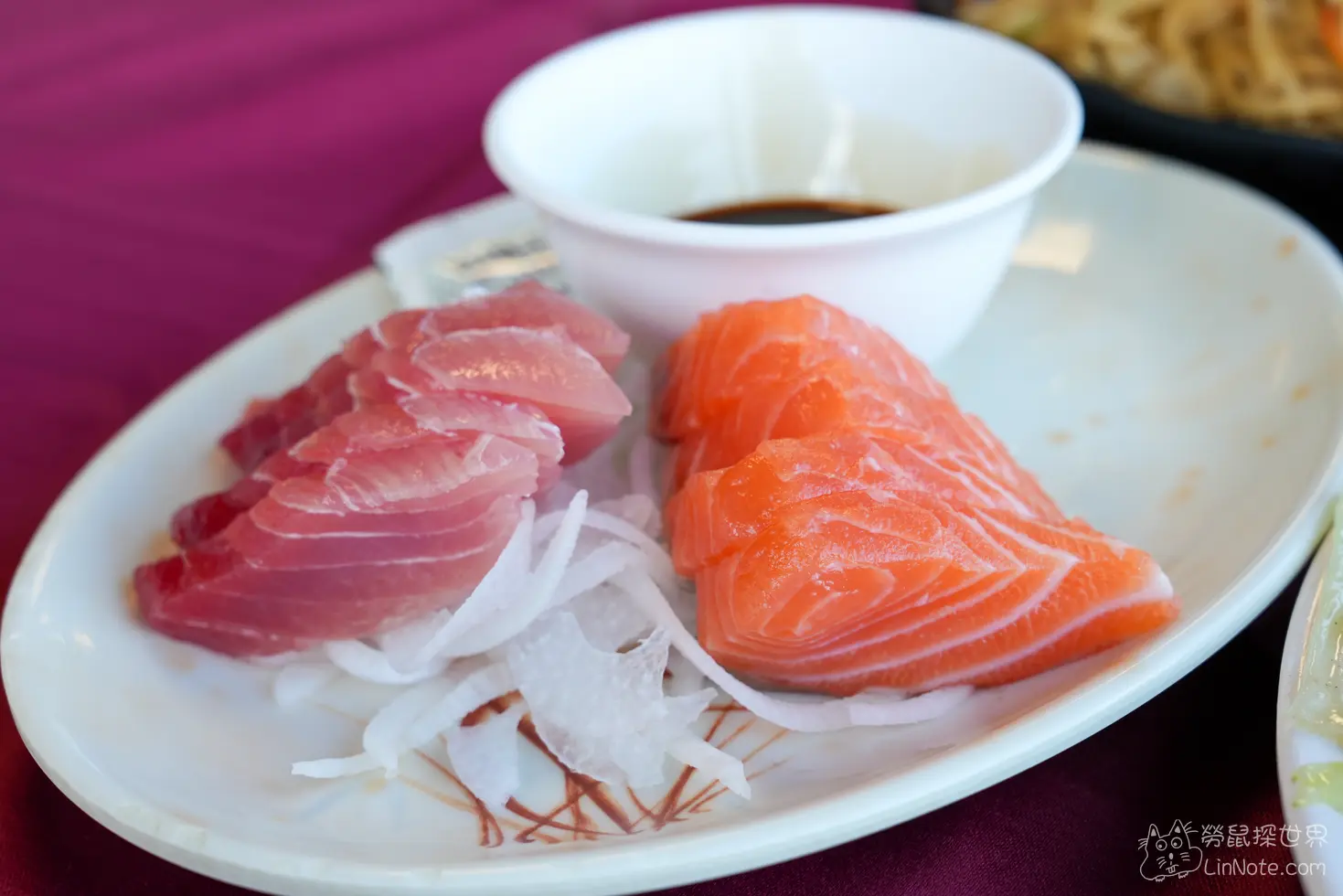 綜合生魚片包含鮪魚與鮭魚,兩種魚肉都相當鮮甜,口感偏軟略帶韌性,新鮮度表現良好,遠高於一般平價海產店的水準,每一口都能吃出魚肉的滑順與甘甜,味道表現相當不錯。