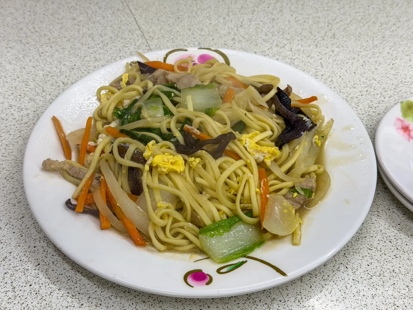 炒麵份量十足,配料豐富,整體調味偏向清爽路線,但我必須說他裡面的豬肉絲超級好吃,肥瘦相間,我覺得可以單點一份炒豬肉!