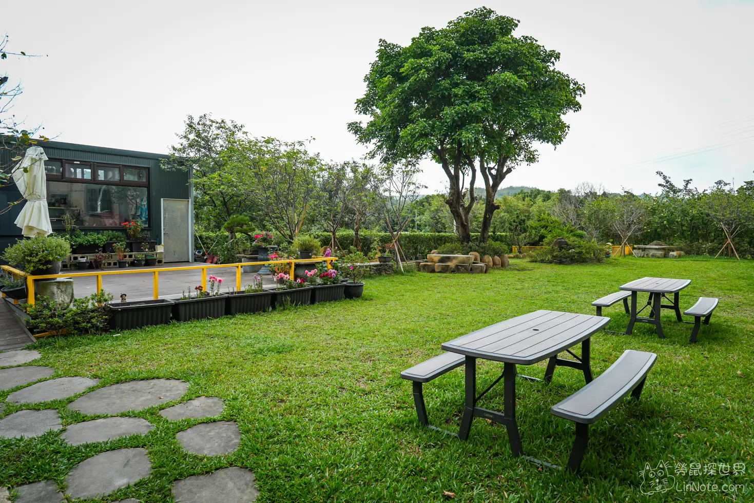 藝術家咖啡館的庭院真的佔地非常大,草坪也打理得不錯,帶寵物過來放風也非常不錯。