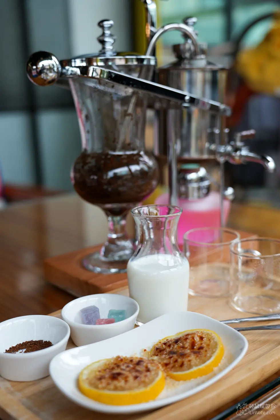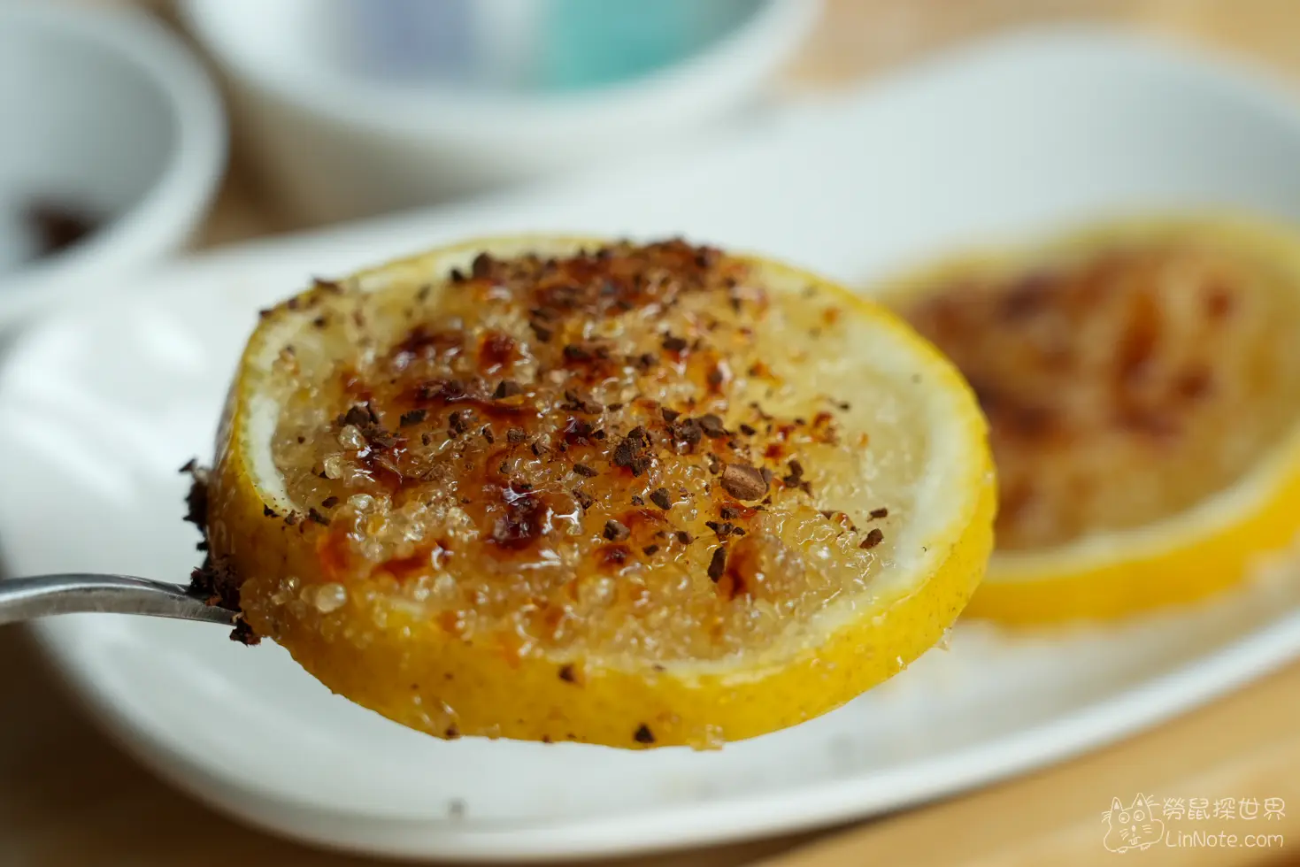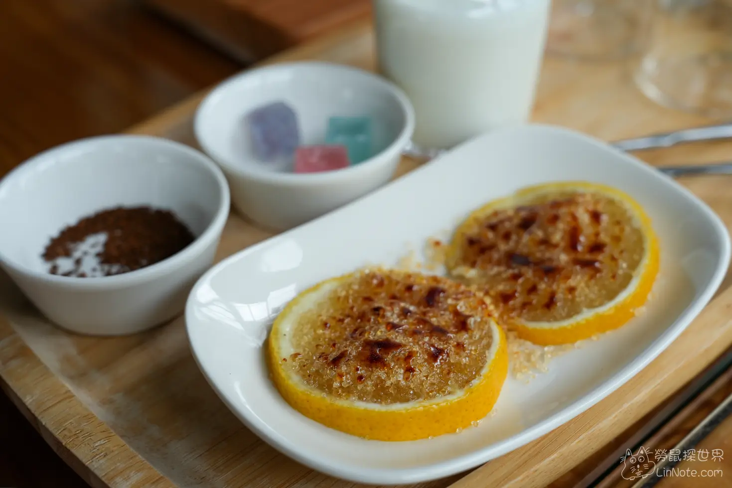 檸檬片盤還有附上一小碗的咖啡粉,店員建議可以把咖啡粉撒在檸檬片上一起享用,檸檬片上有烤製的焦糖吃下去又酸又甜非常過癮,並配上一點咖啡粉會有微微的咖啡香跑出來。