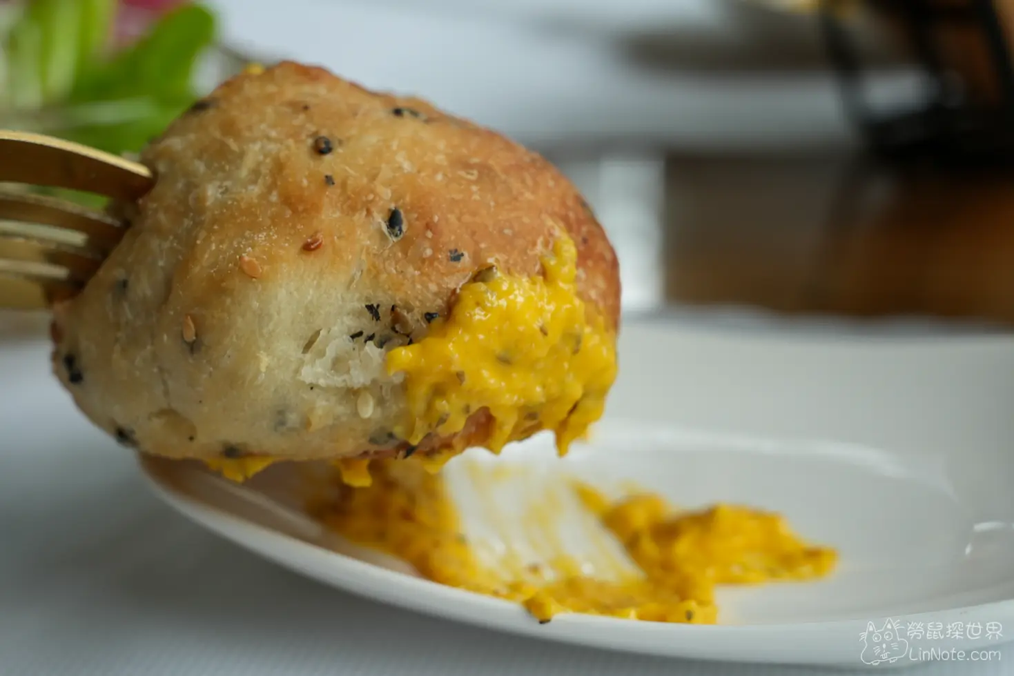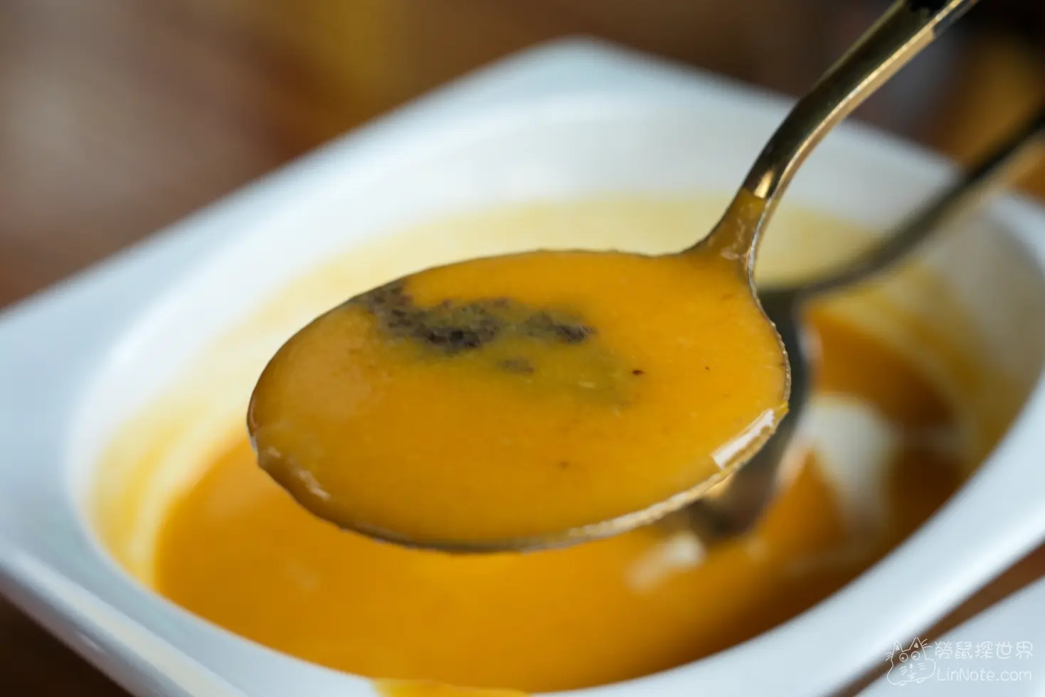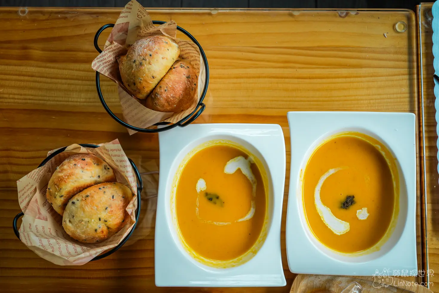 南瓜濃湯的濃郁度非常適中,除了南瓜外,還多了奶油香,讓南瓜濃湯的風味多了不同層次,而且居然還加了1小匙松露,讓南瓜濃湯的味道裡面充滿了松露香,第一次吃到這樣的搭配,很好喝,令人印象深刻。