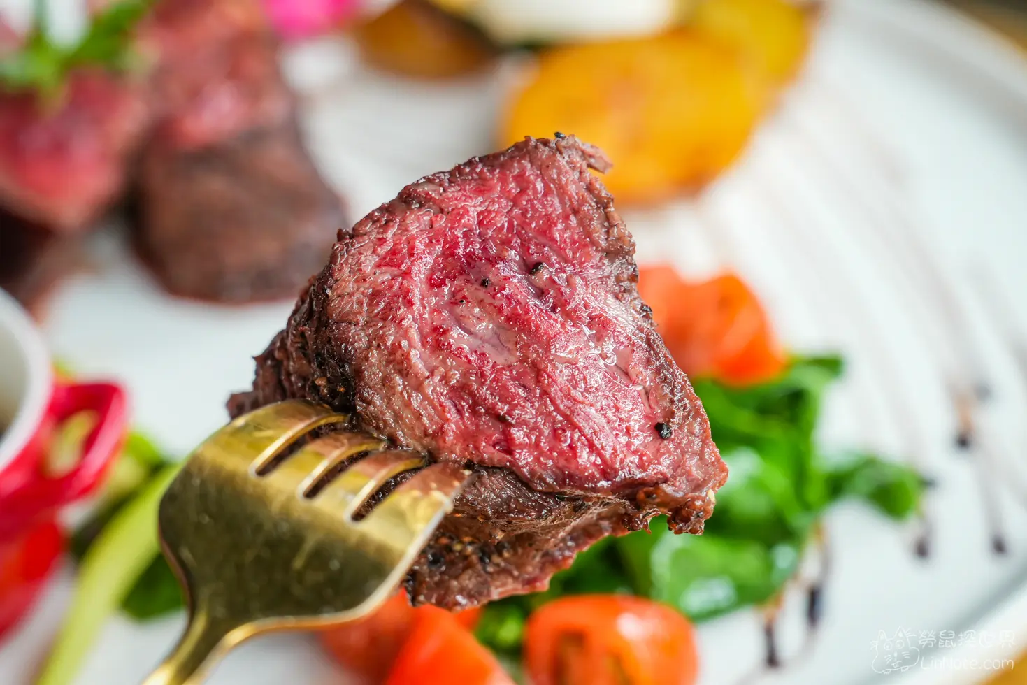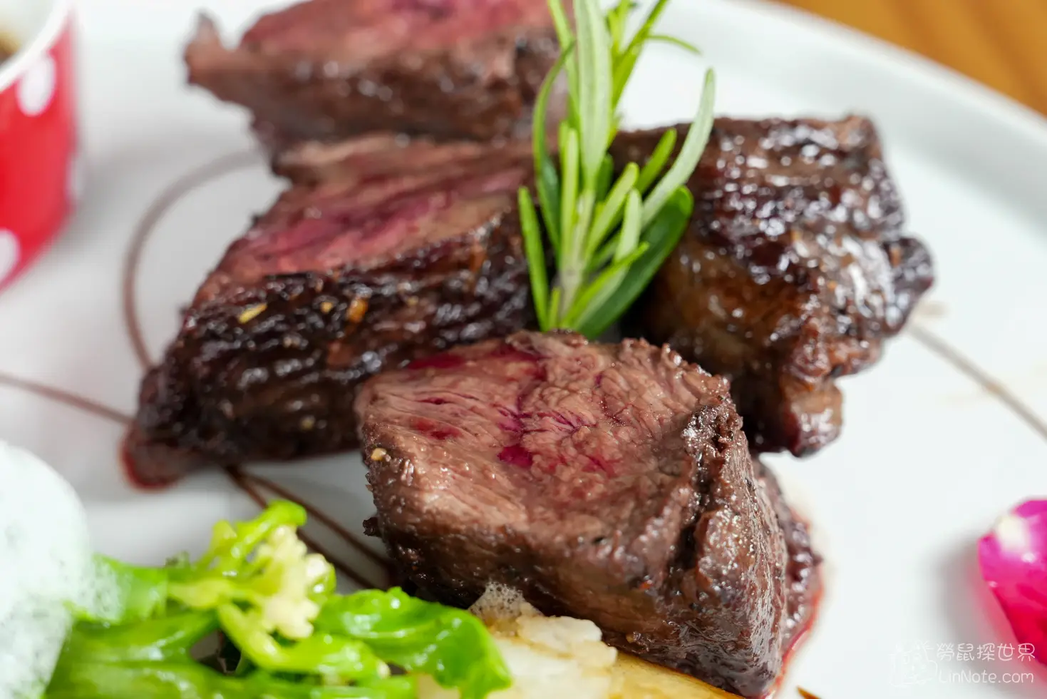 一上桌看到的牛小排切面真的是太美啦!完美的粉色肉,一看就食指大動。