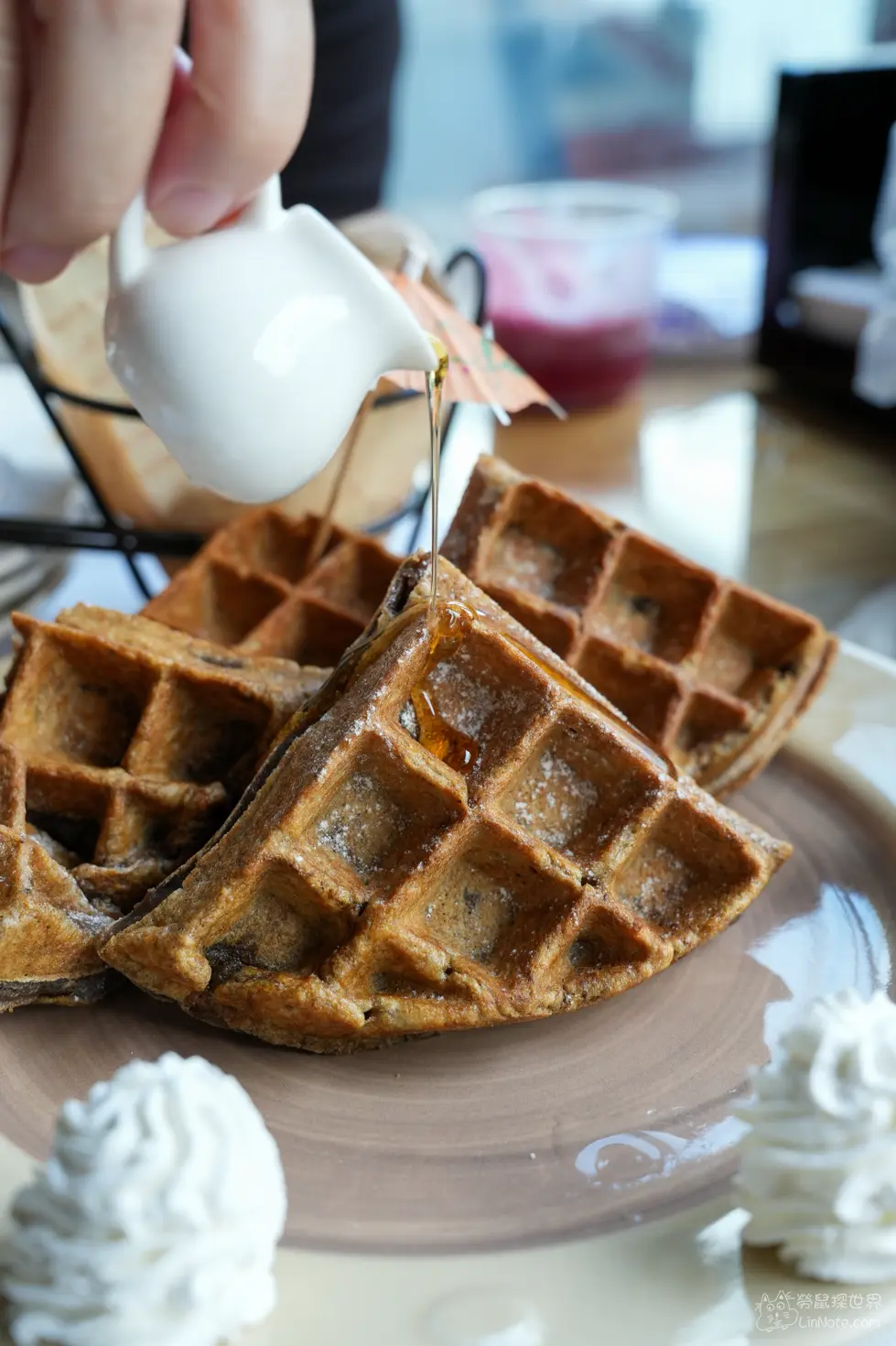鬆餅點了兩款,一款是原味的,另一款是伯爵QQ鬆餅,本來以為都是鬆餅粉製的,想不到原味鬆餅是一般鬆餅粉,而伯爵QQ鬆餅則是麻糬鬆餅。