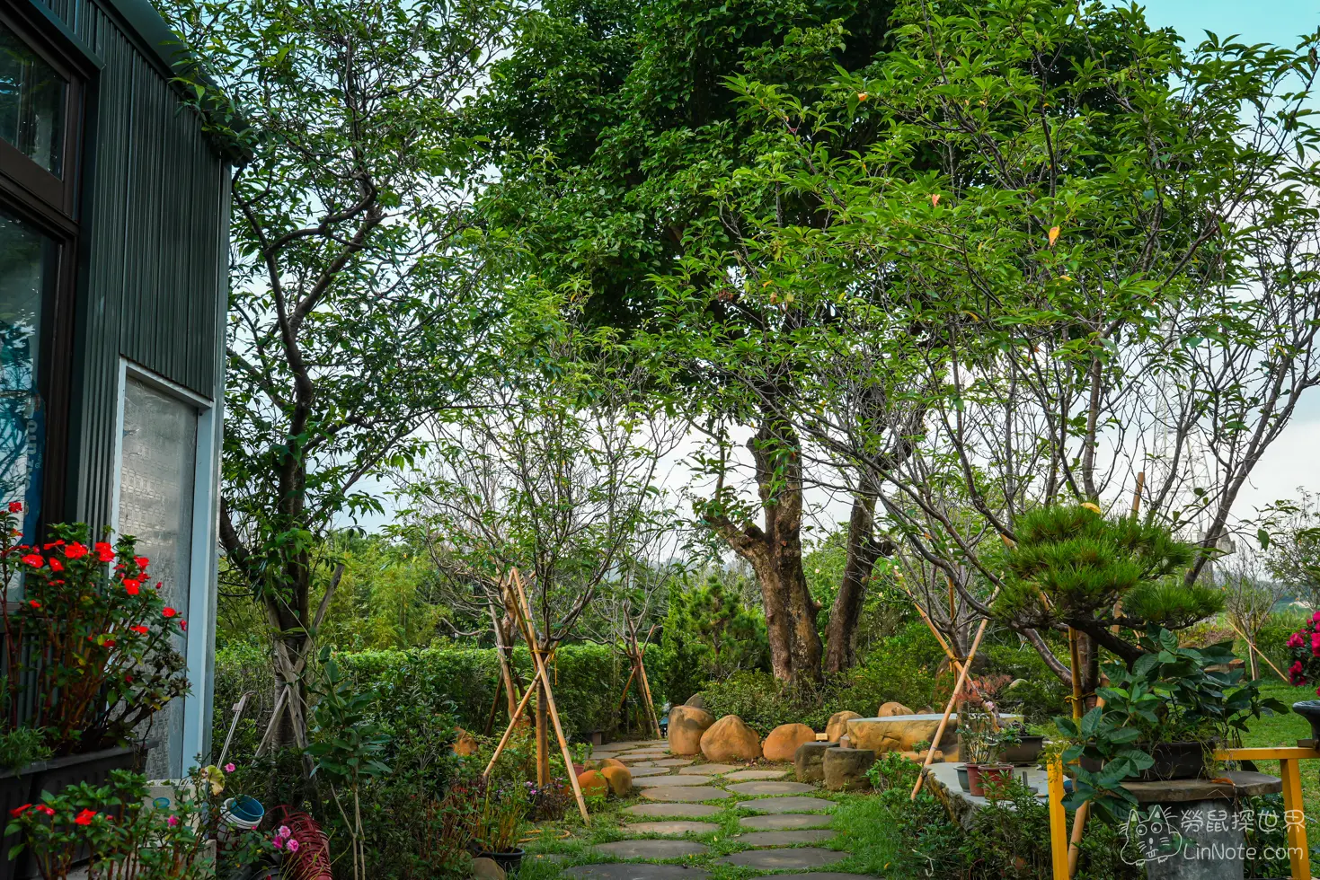 老闆說這個庭院還放養了三隻兔子,可惜我們只找到一隻,而且那隻兔子在我們要拍照的時候還到處跑,所以就無法提供可愛兔兔的照片啦!