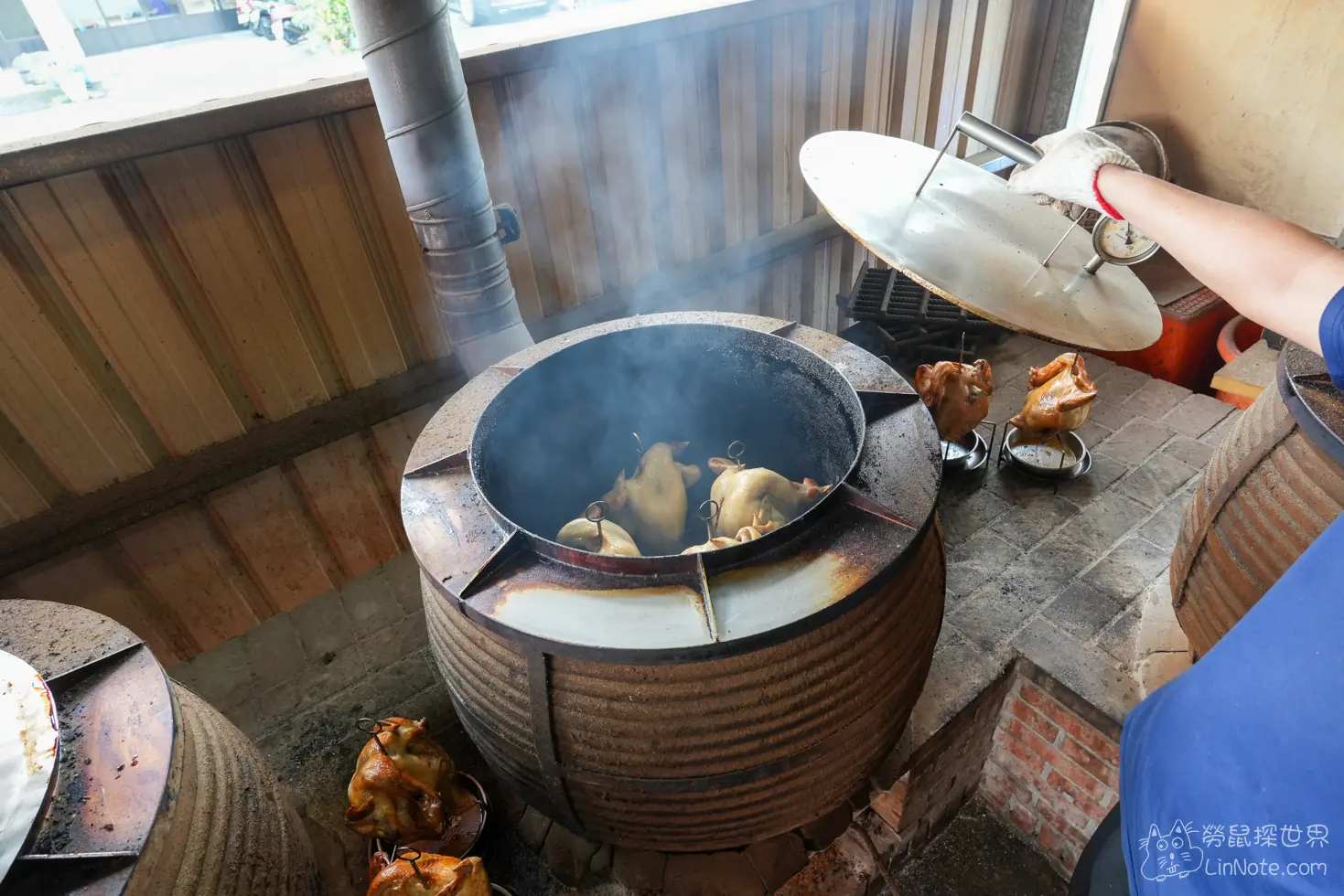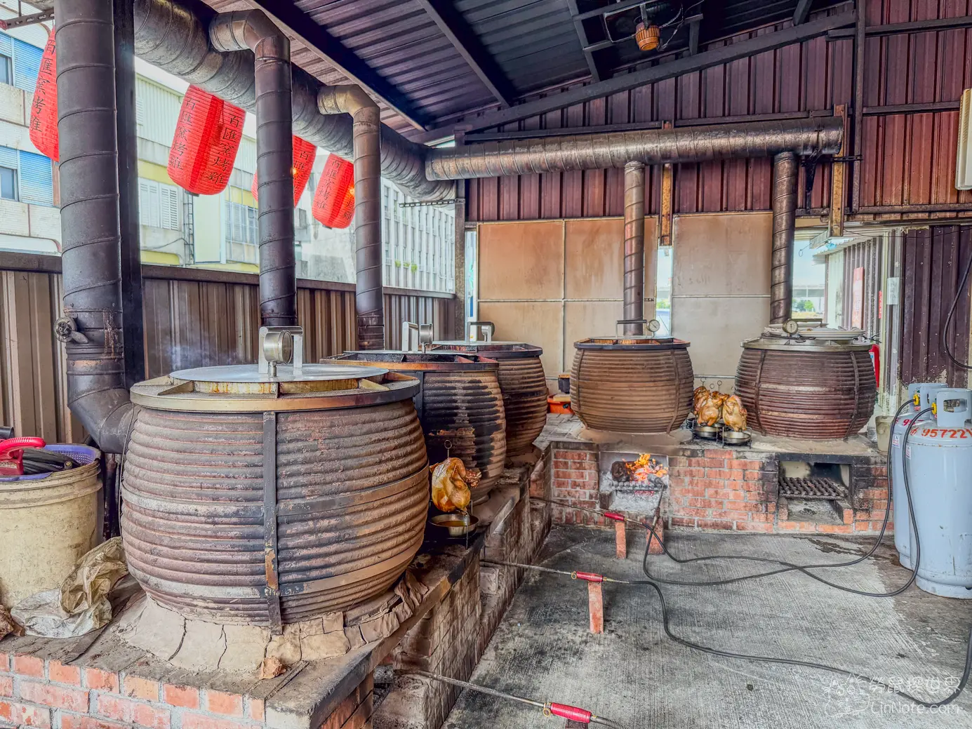 外面除了可以看到排列整齊的龍眼木之外,還可以看到師傅在窯烤甕缸雞的過程,火燒得旺,熱氣升騰,香氣撲鼻,讓人一走進來就食慾大開!