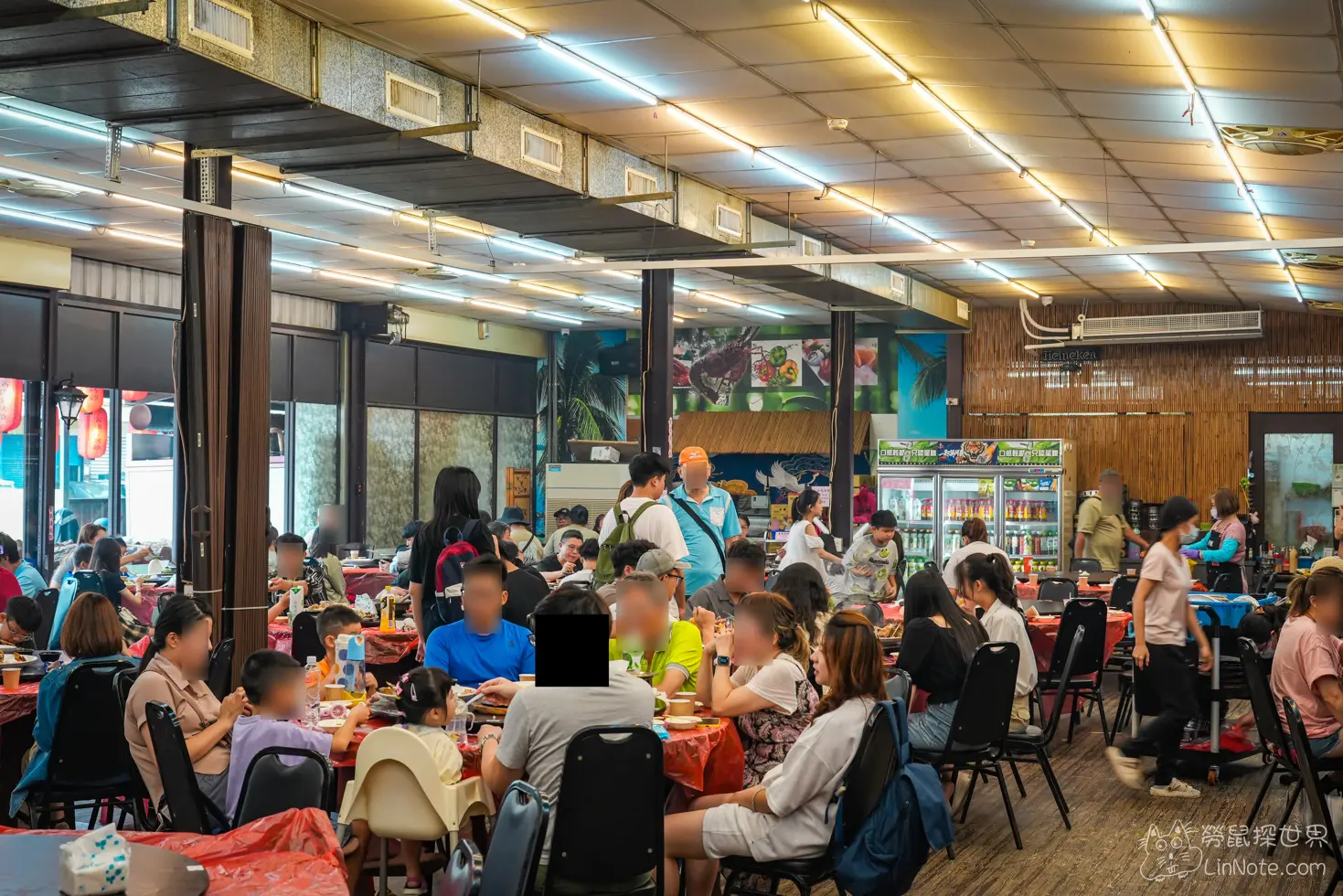 店內空間寬敞、座位數多,以紅色圓桌為主,方便家庭與多人聚餐。天花板設有整排冷氣,夏天的時候環境絕對不怕會熱!