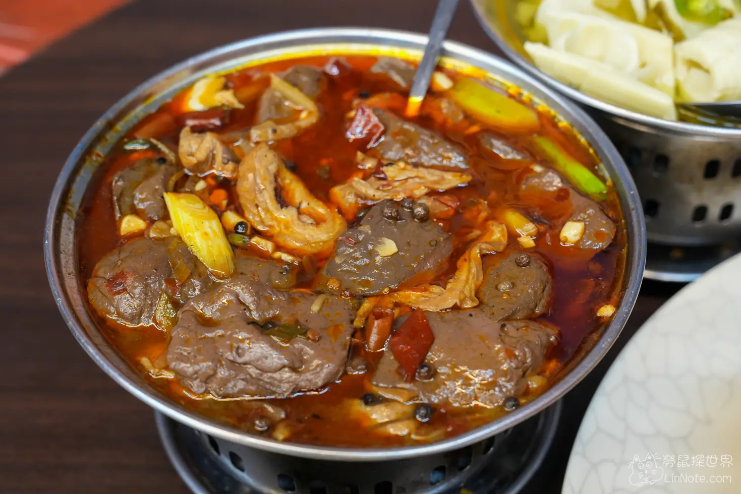 五更腸旺也是百匯窯烤雞餐廳必點的招牌之一,跟窯烤雞一起獲得「宜蘭勁好TOP10 好食」的獎項!一上桌紅通通的湯汁中浮著大塊鴨血與滷得入味的大腸,再搭配蒜末、青蔥與大量花椒、辣椒提味,光是視覺就讓人食指大動。
