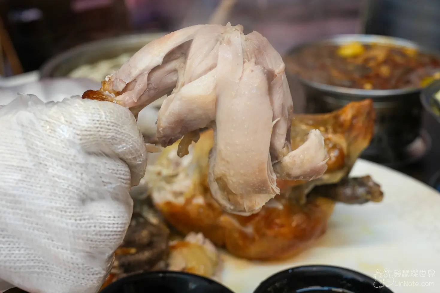 店家選用龍眼木炭火現烤,全雞色澤金黃、香氣撲鼻,雞肉鮮嫩多汁,尤其連雞胸部位都不乾柴,是來店必嚐的招牌佳餚。