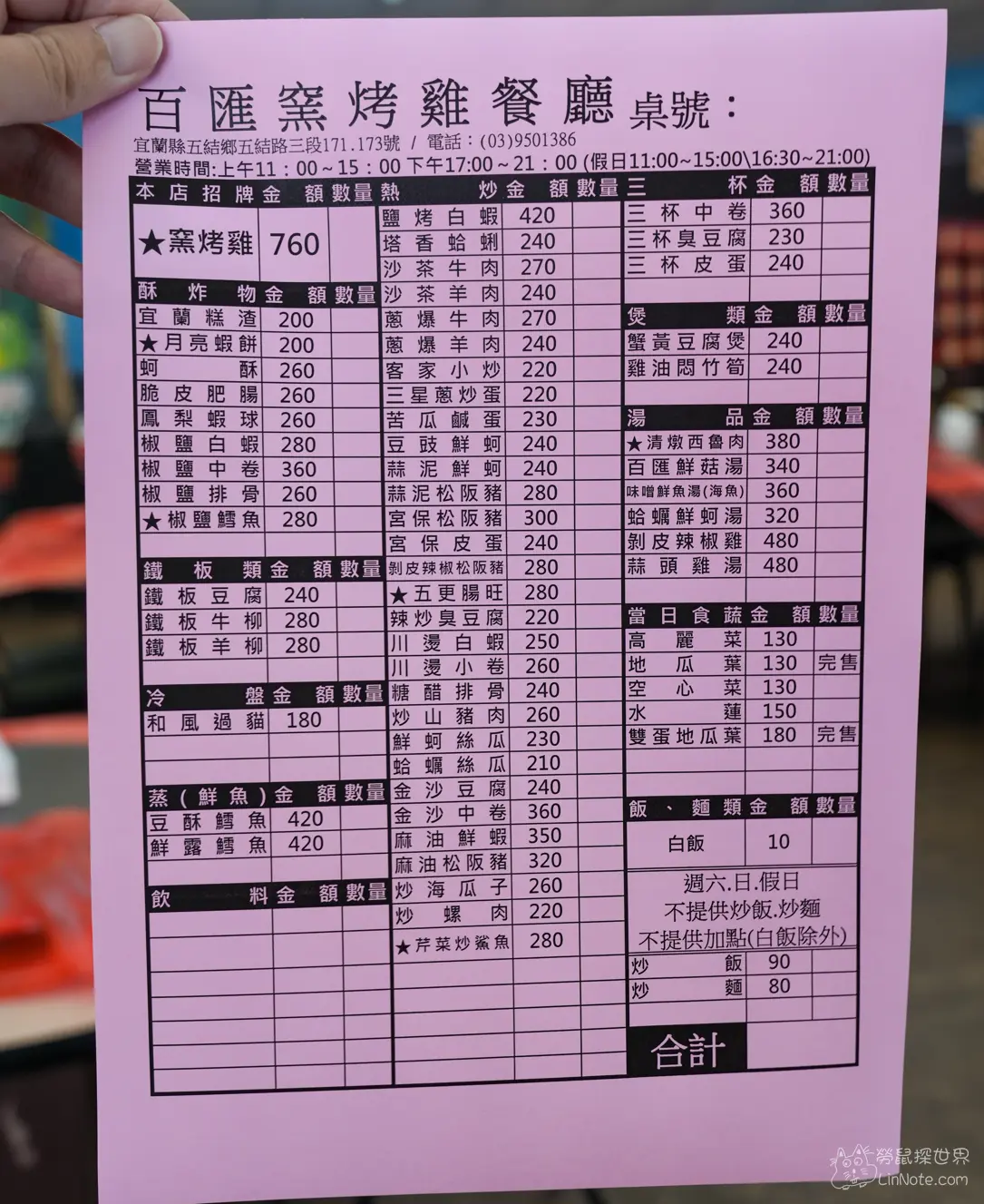 百匯窯烤雞餐廳的餐點真的非常好吃,尤其是他的招牌窯烤雞,每一口都鮮嫩多汁,除了窯烤雞,他的快炒類表現也不凡,每一道都超級下飯,分量十足,吃完真的超級滿足,這裡停車方便,交通來往便利,非常適合跟朋友來宜蘭玩時,一同前來用餐!