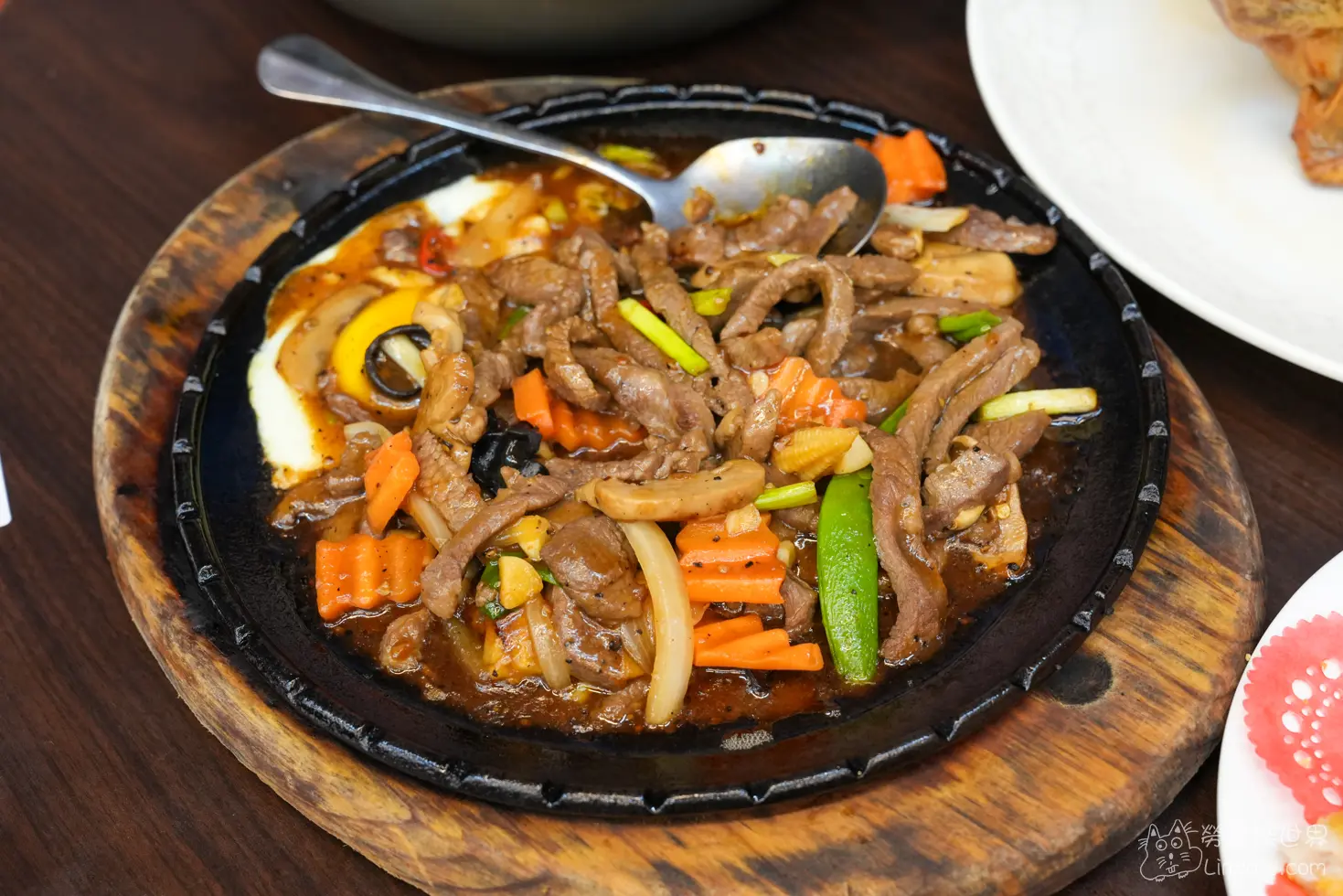 鐵板牛柳一上桌就可以聽到醬汁在鐵板上滋滋作響的聲音,聞著鹹香的醬汁,真的是令人食指大動,牛柳吃起來很有嚼應,帶點胡椒的香氣,又是一道下飯必點的菜品。