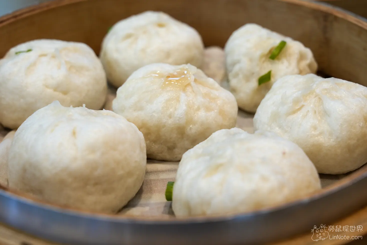 小籠包的大小比一般的小籠包還要再大一點餅皮很厚,而且很有韌性壓下去還會回彈裡面的肉飽實鮮甜,帶有一點點湯汁,一籠總共有7顆。
