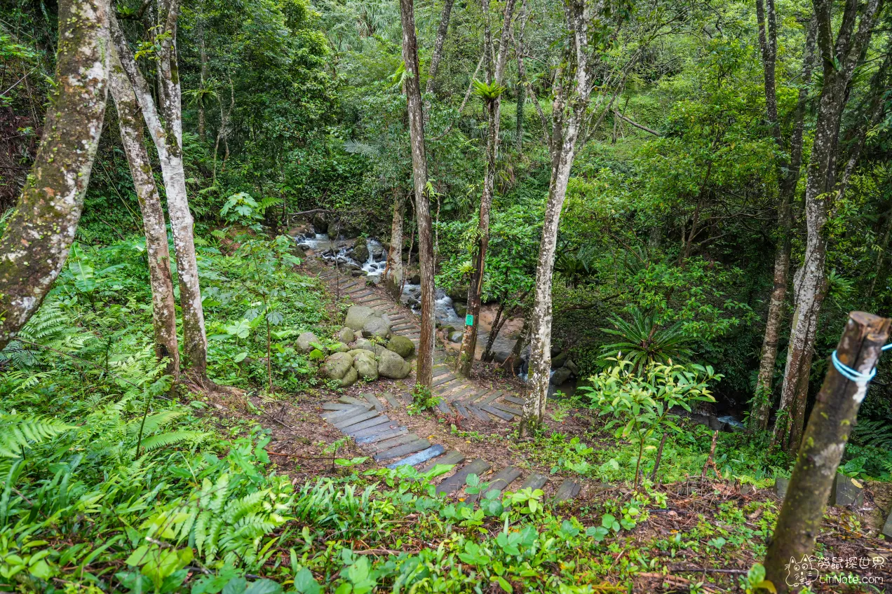 前往小溪需要一條經過蜿蜒的小徑,木板鋪成的臺階上偶爾可見青苔,透露着這裏的溼潤與清新。兩側高聳的樹木交織成天然的隧道,陽光透過樹葉灑下斑駁的光影,彷彿跳動的生命。行走其間,空氣中瀰漫着泥土與植物的芬芳,耳邊是微風穿過樹林的沙沙聲,讓人感到一種前所未有的寧靜與放鬆。