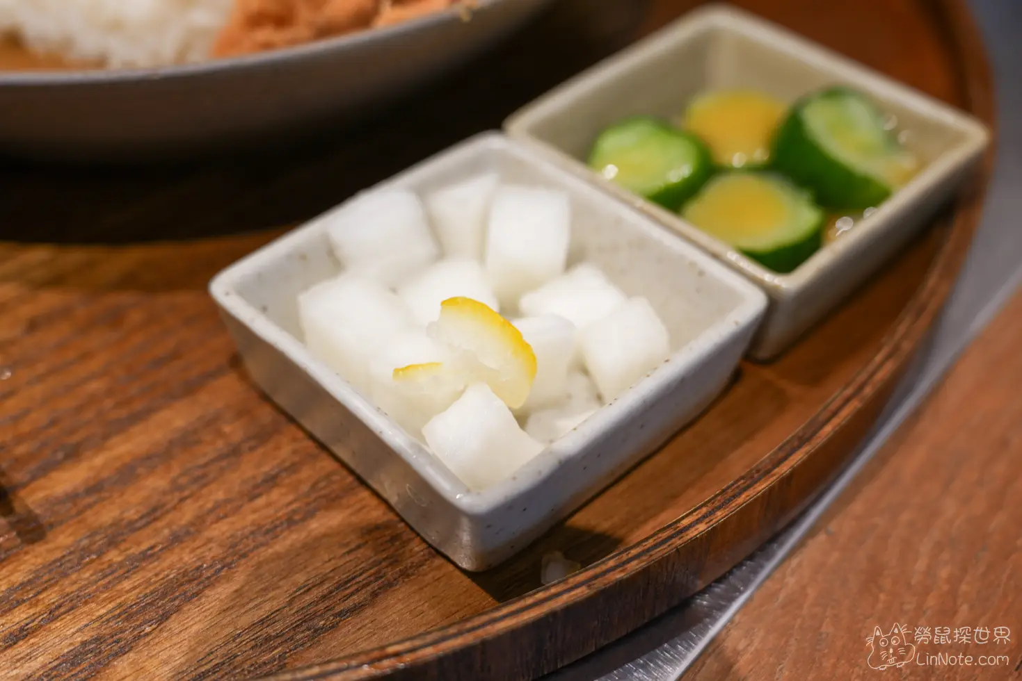 醃蘿蔔非常清爽,味道帶有微微的酸感,非常開胃,最特別的就是上面隱約帶有一抹淡淡的檸檬黃,本來以為是檸檬,想不到居然是柚子,加入柚子醬後,醃蘿蔔又帶有柚子的清甜,非常好吃。