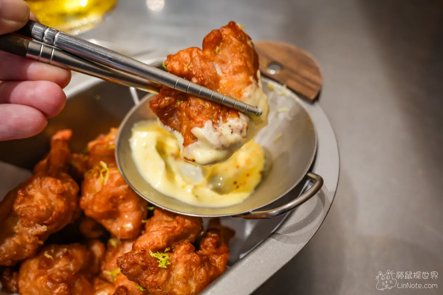 雞肉非常鮮嫩多汁,帶有點薑味的在雞肉裡面,配上一旁的日式美乃滋,鹹甜鹹甜的風味交織在一起,很特別噎!
