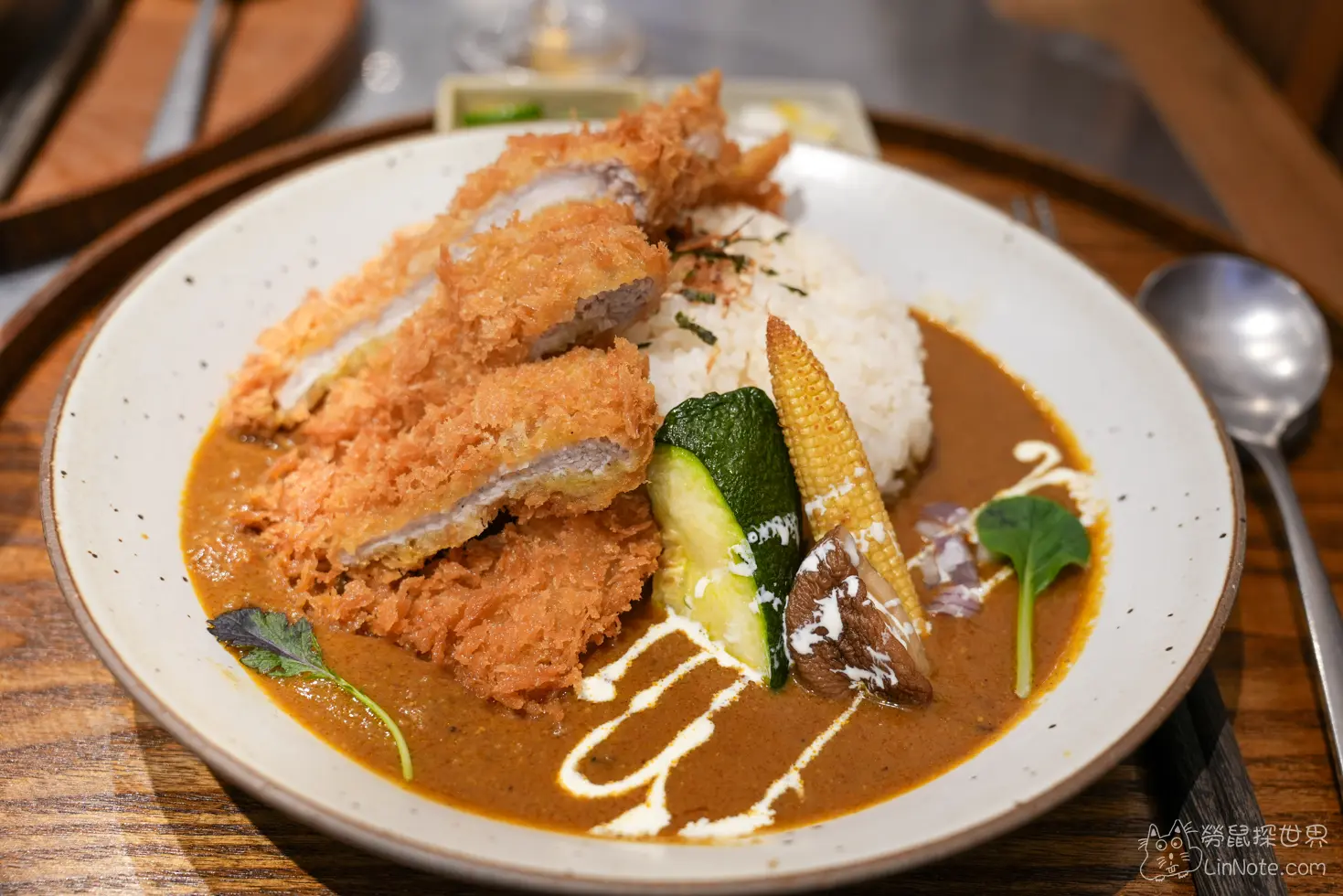 咖哩裡面的配料有入口即化的牛肉塊,每一口都充滿了咖哩的辛香和肉的鮮香;還有嫩滑的香菇,吸滿了咖哩汁的味道,喫起來軟中帶勁,脆嫩的玉米筍和嫩綠的櫛瓜,既點綴了顏色,也在口感上增加了多樣的層次。