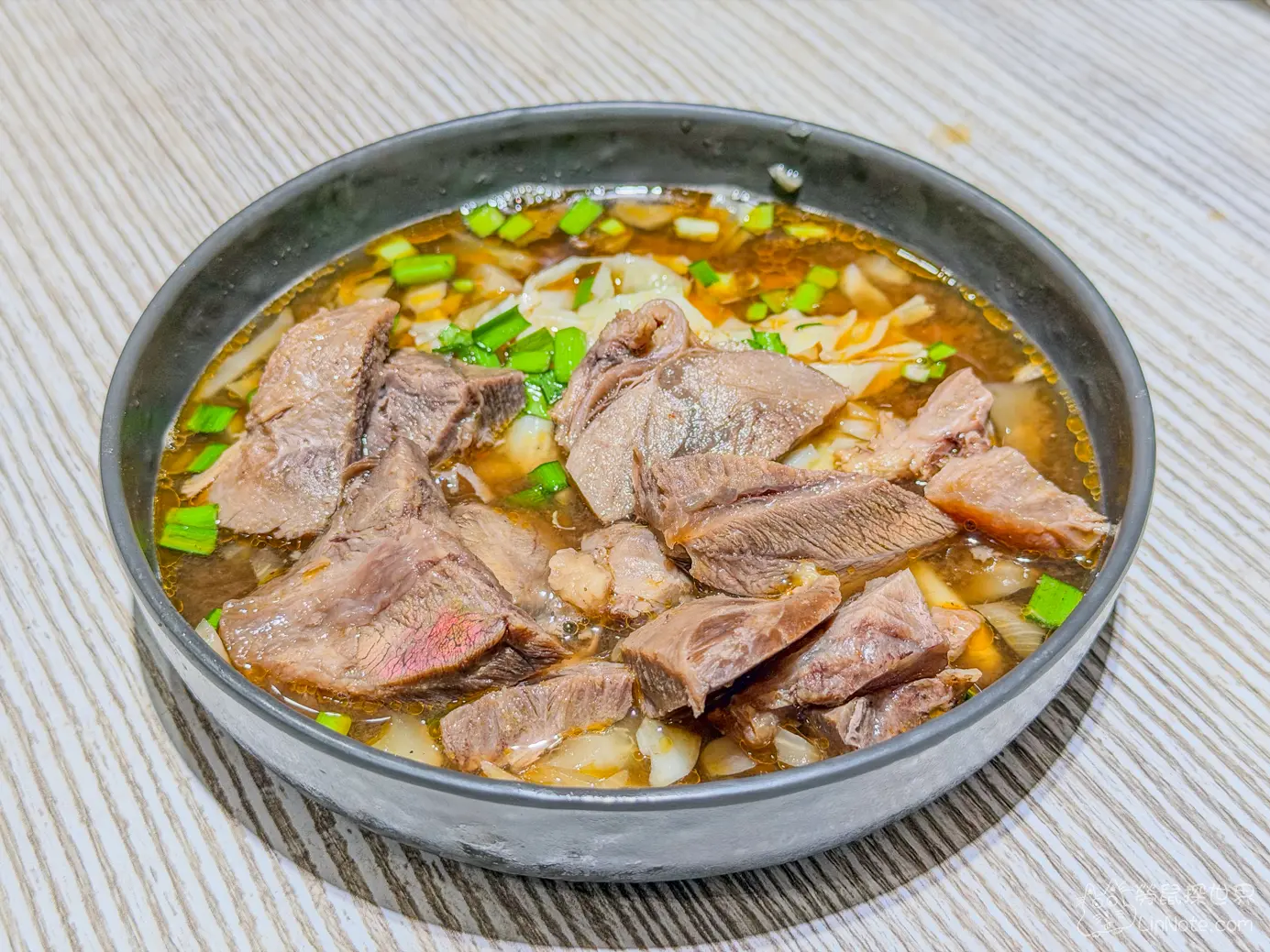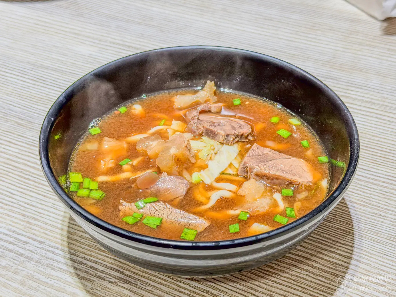 特別值得一提的是,冠軍牛肉麵主打「高度客製化」,在點餐時會細心詢問顧客湯頭的鹹淡偏好,無論偏好清爽還是濃郁口味,都能享有專屬的一碗牛肉麵。我們選了「淡一點」的湯頭——老實說,湯頭並不是特別複雜或重鹹的那種名店風格,但以這個價格與整體表現來看,湯中仍能喝出牛肉的香氣,是合理且討喜的表現。