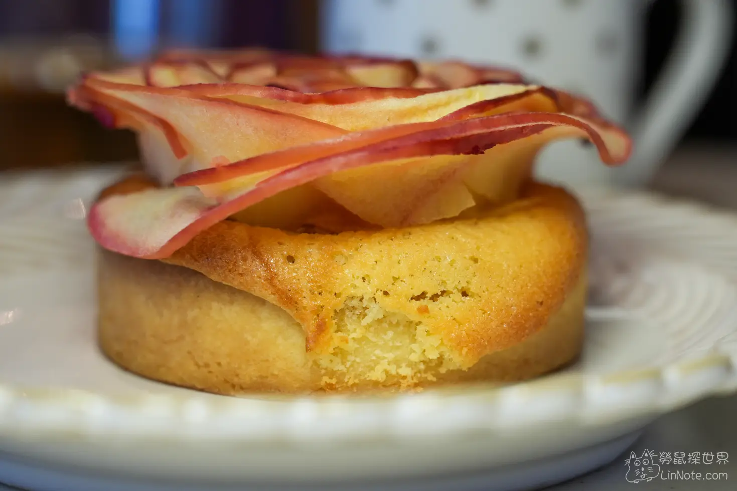 玫瑰蘋果花塔真的非常好吃,上面是新鮮的蘋果切片,烤過後的蘋果切片味道蠻特別的,少了脆脆的蘋果感多了一點水嫩的口感,而且溫溫的頻果真的挺特別的,下面的蘋果派的派皮非常的酥,裡面有蘋果餡跟蘋果塊,味道不會太甜真的很好吃,因為是現烤的,所以一上桌就是滿滿的塔香味。