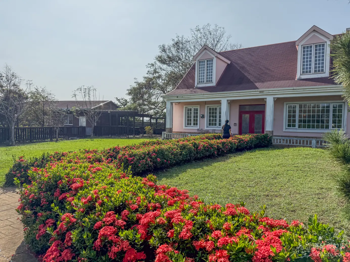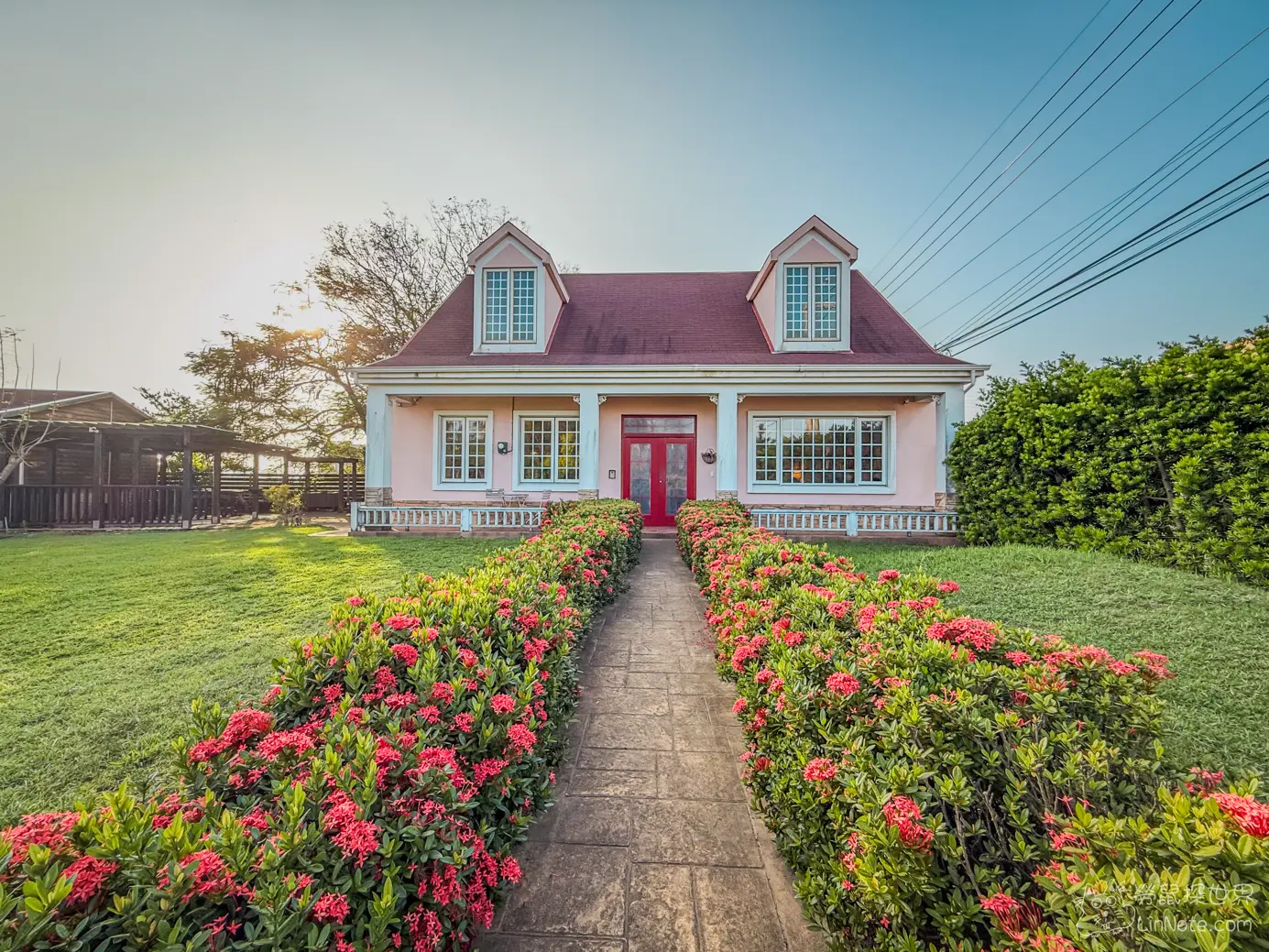 chez moi 88-2的外觀是一棟普羅旺斯的粉紅小屋,看起來非浪漫,而且屋前有大片草地,不管是帶小孩還是溜寵物都非常適合,不過我們沒有特別詢問可不可以帶寵物,只是看到google map上的相片有狗狗在奔馳,為了保險起見,建議訂位時可以先詢問店家。