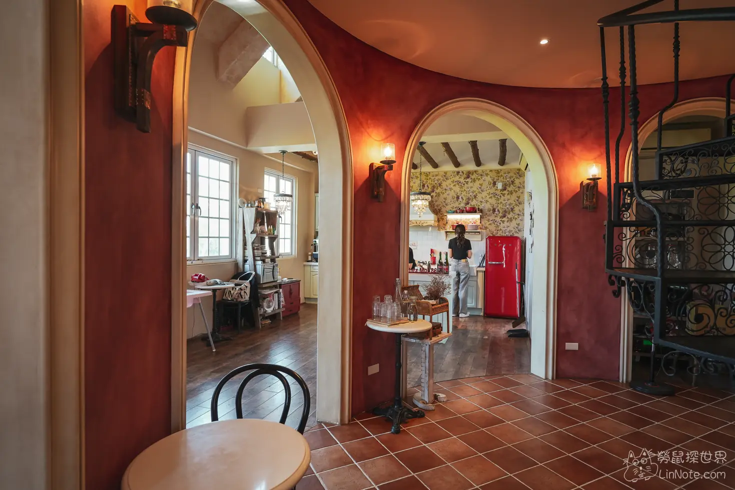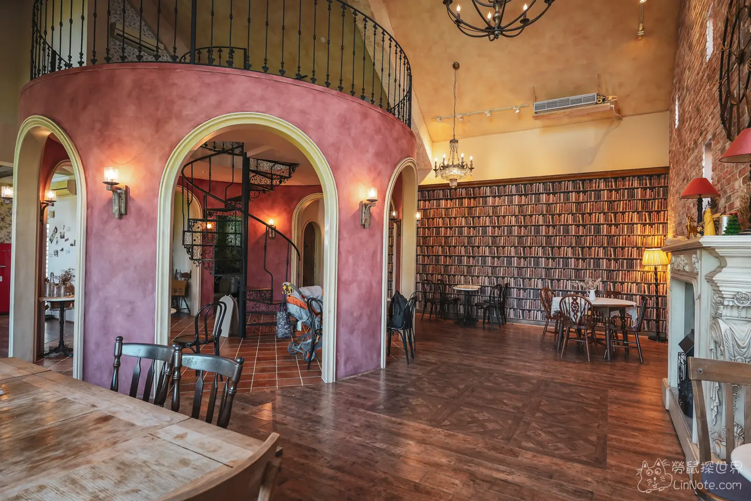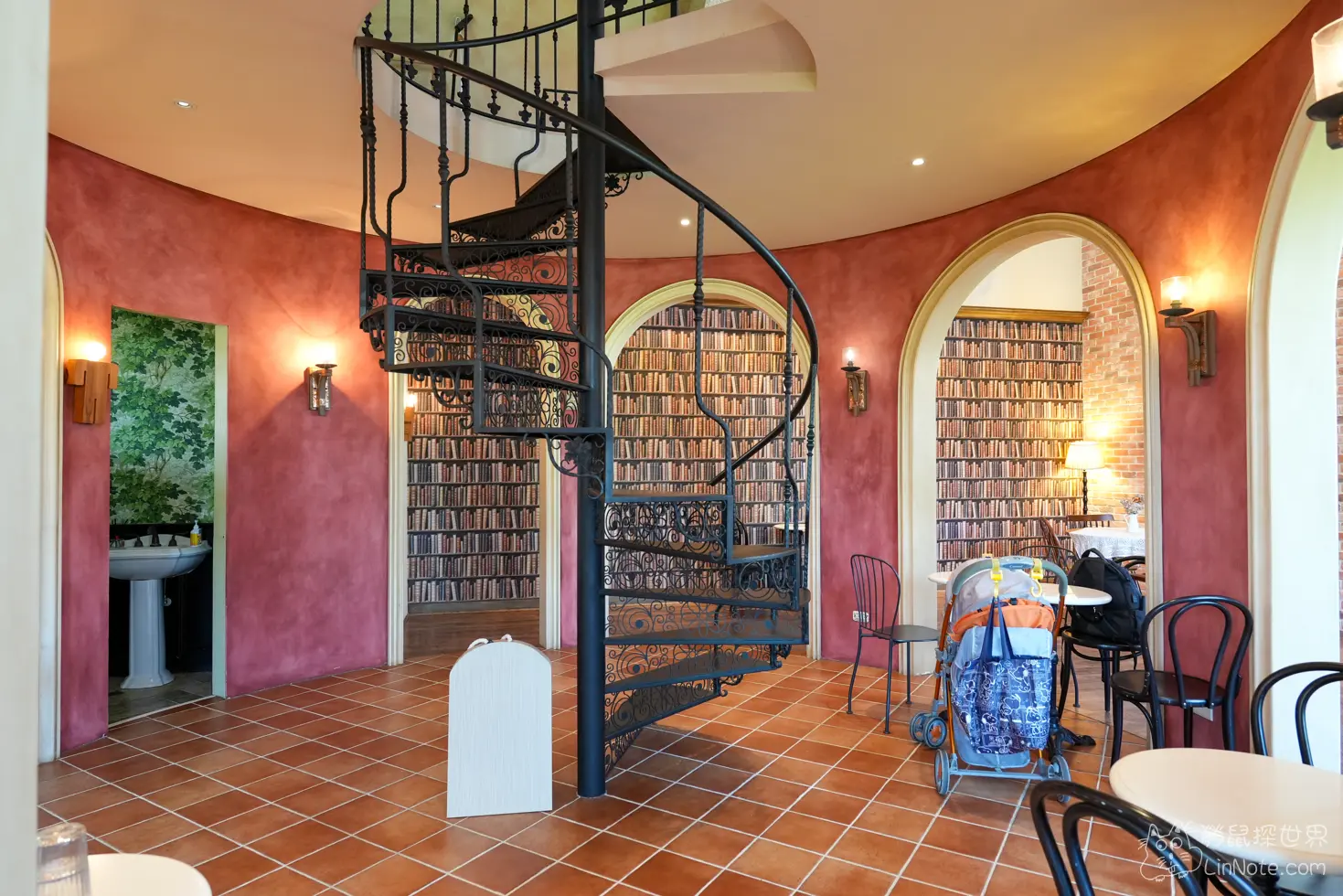中間樓塔還有旋轉樓梯,在這裡拍照也非常美,不過為了安全考量,店家禁止7歲以下孩童攀爬。
