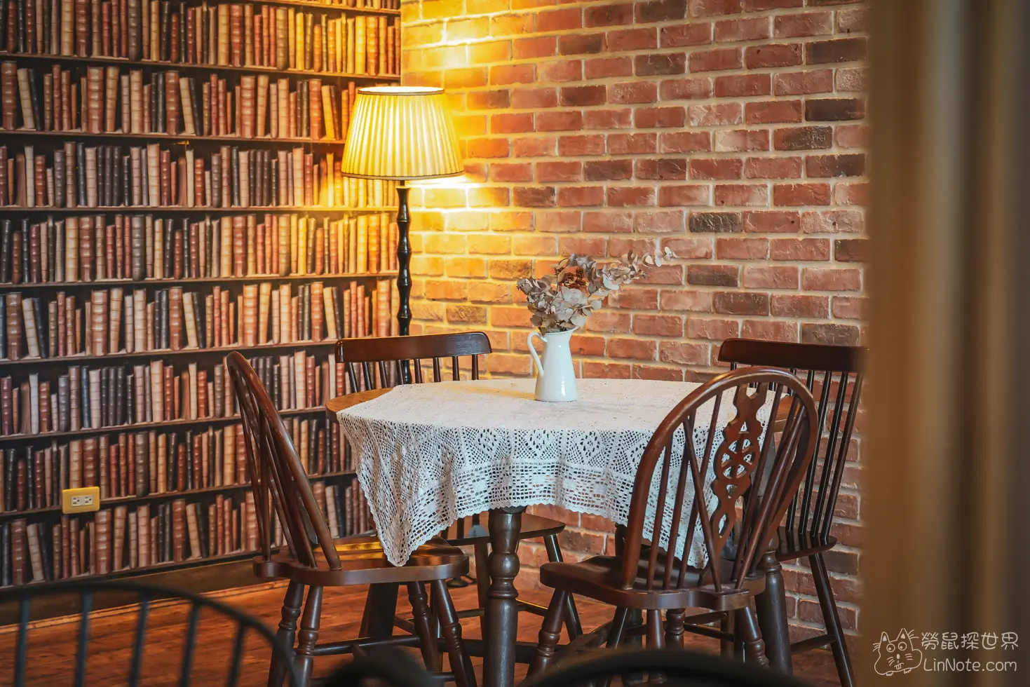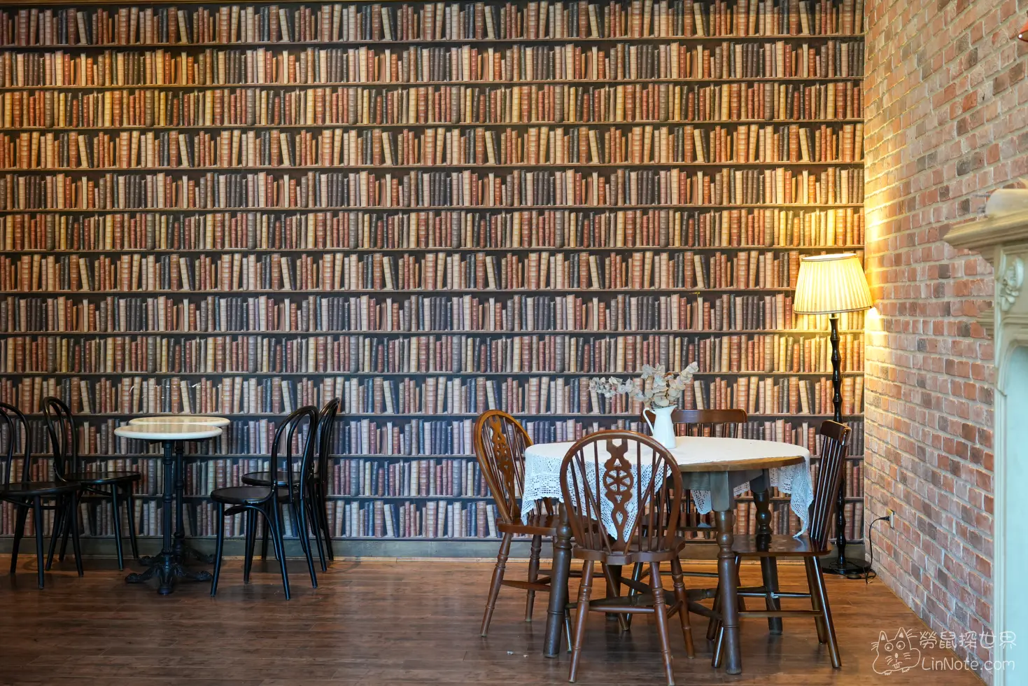 餐廳的某面是書牆的造型,雖然近看可以很明顯看出是貼面,但遠拍還是非常壯觀。