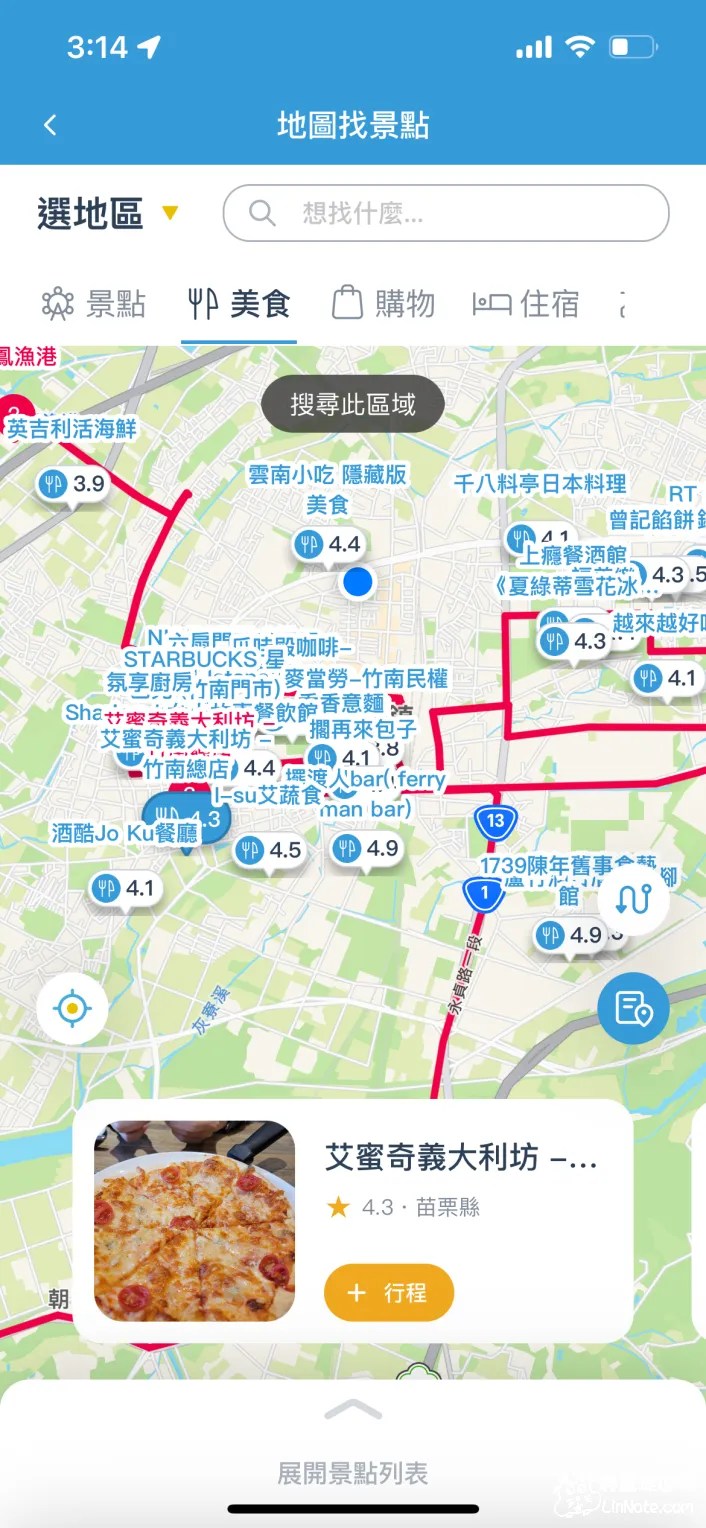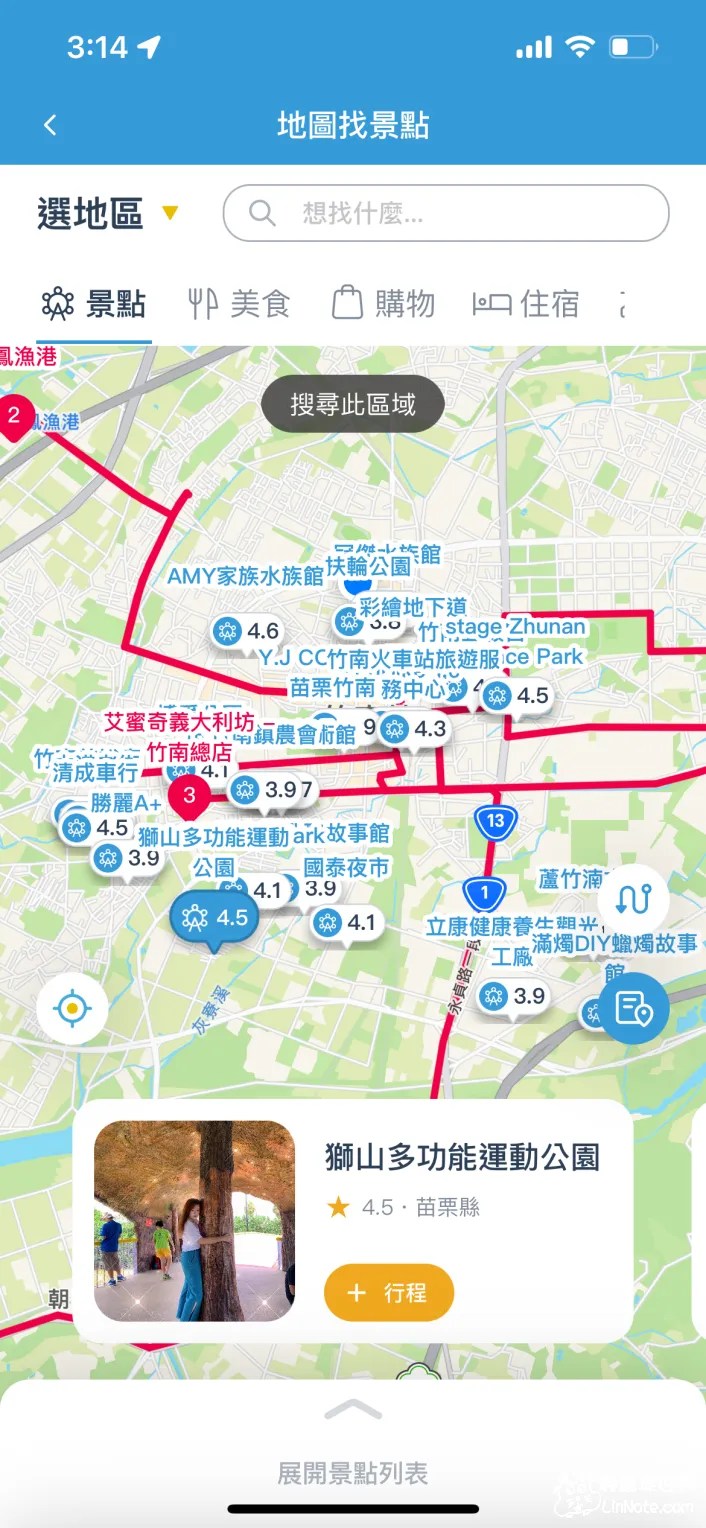 去趣可以從地圖上列出景點的地點以及小圖案,也可以從景點的精選照列出苗栗縣好玩的景點,這時候就是先不用考慮太多,把看到想去的地方都加進去就對啦!