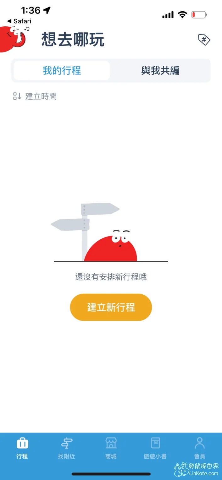 接下來就來記錄一下出去玩的實際體驗啦!一開始就可以先選擇自己想要去玩的地點,我們這次想要去玩的地區是苗栗縣,點下去之後就可以建立行程囉!