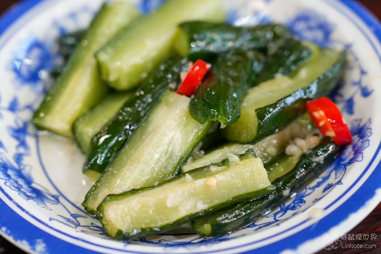 涼拌小黃瓜非常脆口,味道也夠,但我覺得入味度稍微差了一點點,如果能再醃久一點會更完美。