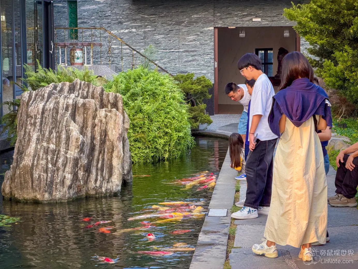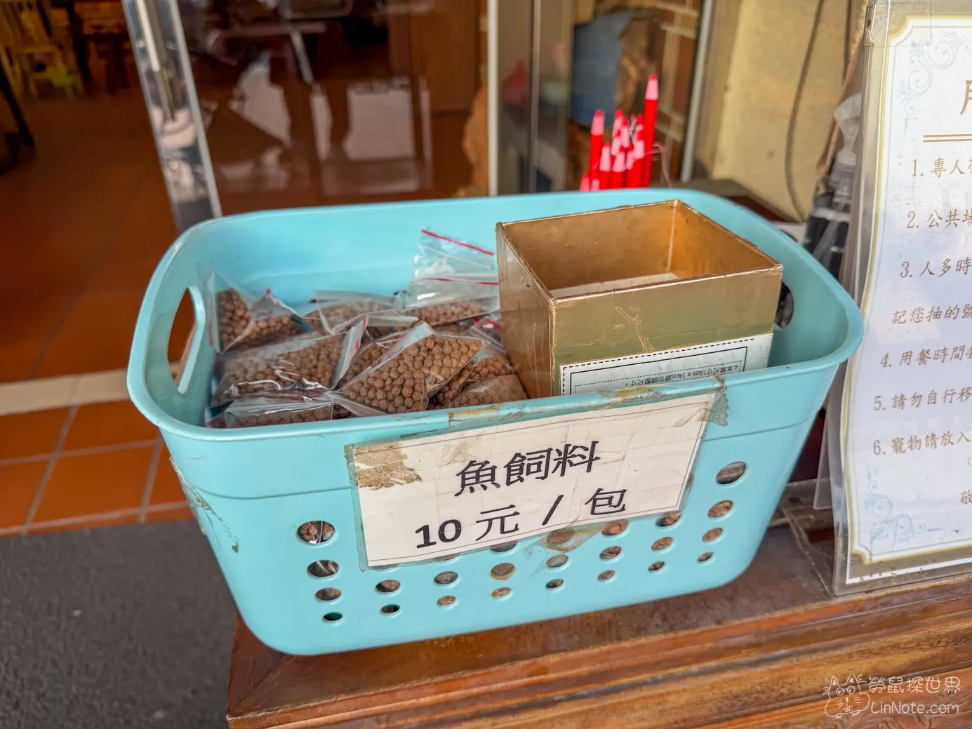 現場還有提供魚飼料,一包10元,買來餵餵池子裡的錦鯉,看著牠們爭食的樣子,真的很療癒,非常適合家庭旅遊帶小孩來放電。