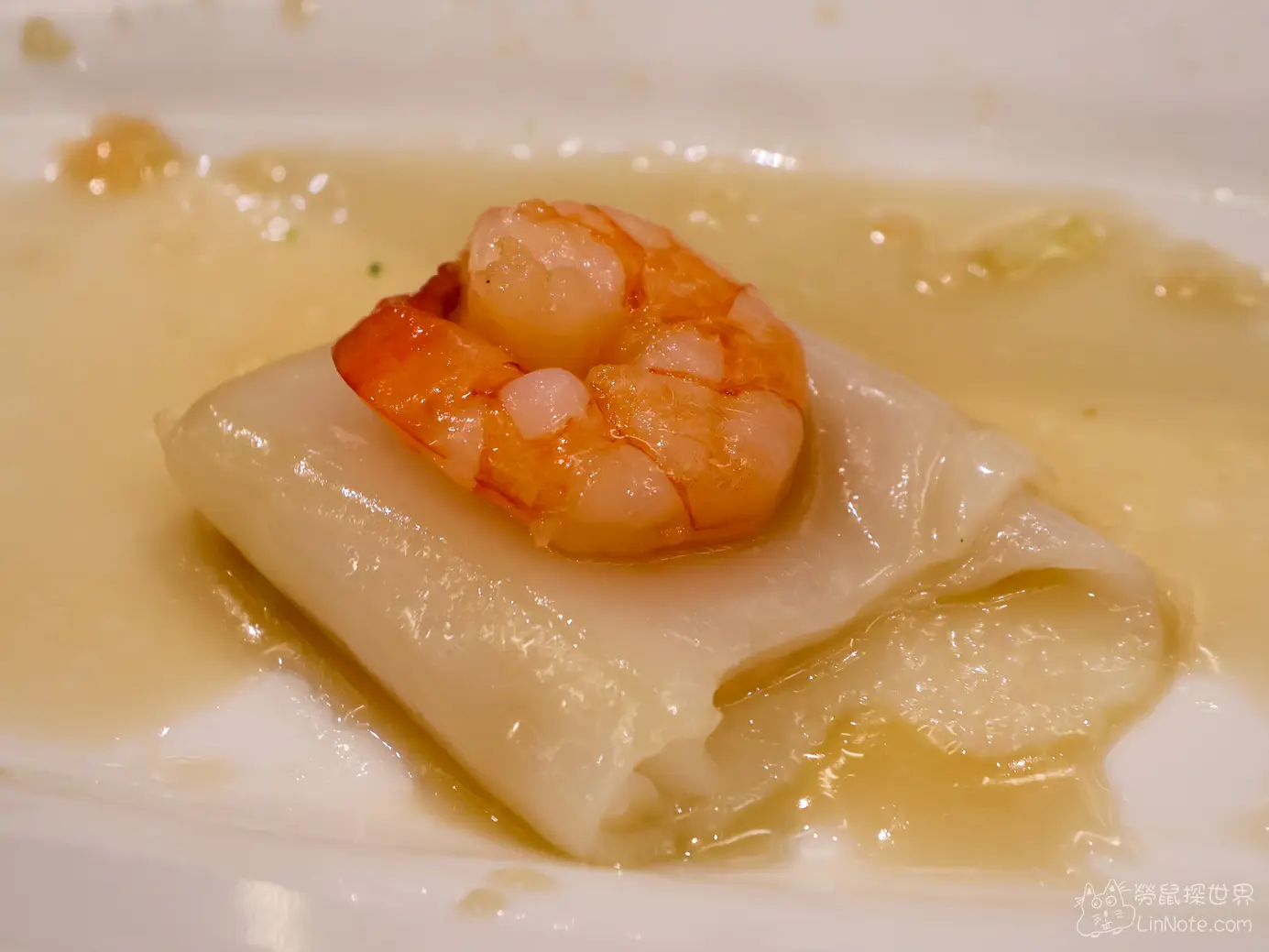 韭王鮮蝦腸很厲害,蝦子的個頭很大且帶有甜味,口感脆口。粉腸皮非常Q彈,淋上那種甜甜、清爽的特製醬油,整道菜吃起來非常協調。