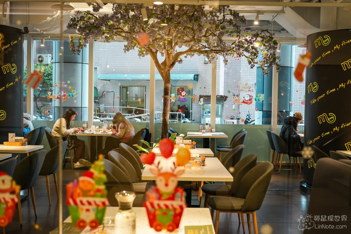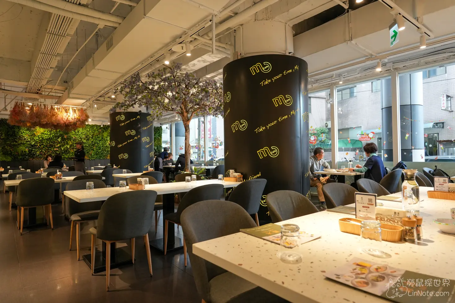 店內播放的輕鬆的爵士樂。薩克斯風的聲音悠揚在餐廳內,在這裡用餐真的很放鬆。而且餐廳中央豪有一棵樹,非常特別。