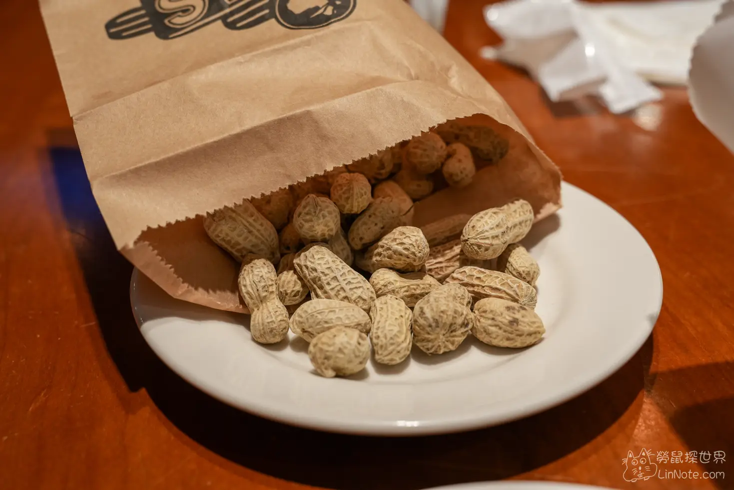 坐下沒多久,麵包一袋花生馬上就上桌了。