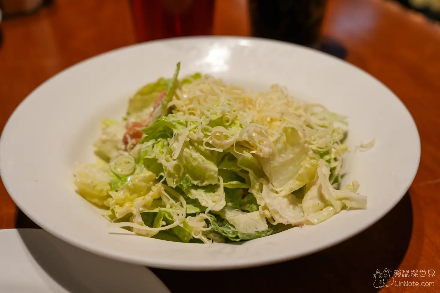 沙拉上撒滿了切達起司,起司味非常香濃,醬汁味道偏重,蠻開胃的。 不過有個小缺點,生菜吃起來太冰了。感覺是先分裝好一盤一盤放在冰箱冷藏,客人點了直接拿出來。雖然味道不錯,但剛入口那種冰鎮感稍微有點突兀。