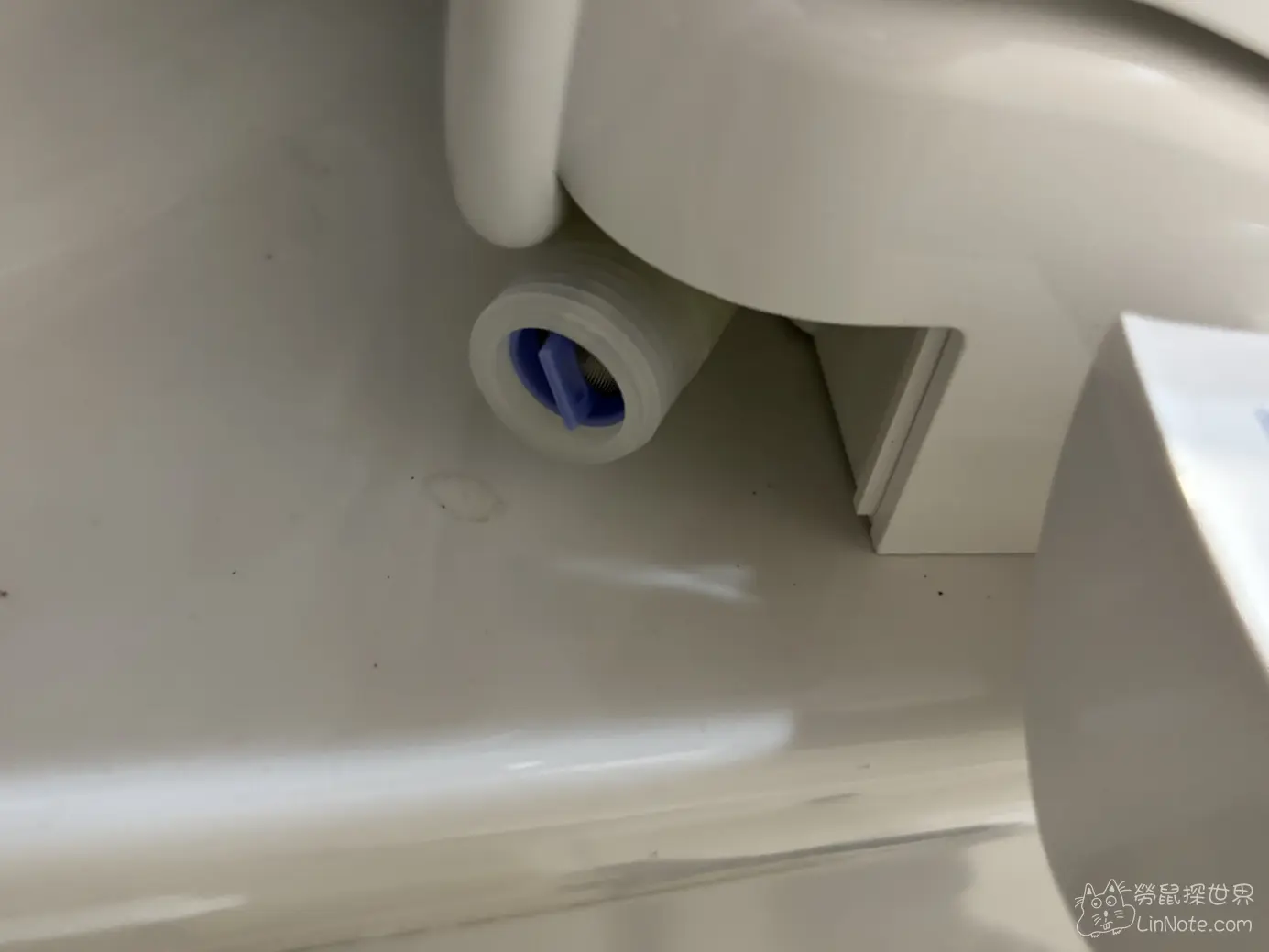 首先是洗屁屁的水源。最讚的地方是這款免治馬桶居然有外接濾芯可以過濾雜質,讓清洗的水變得更乾淨,這對於接觸私密處的水質來說非常重要,而且也能避免水裡的沙石進入機體,有效延長免治馬桶的使用壽命。