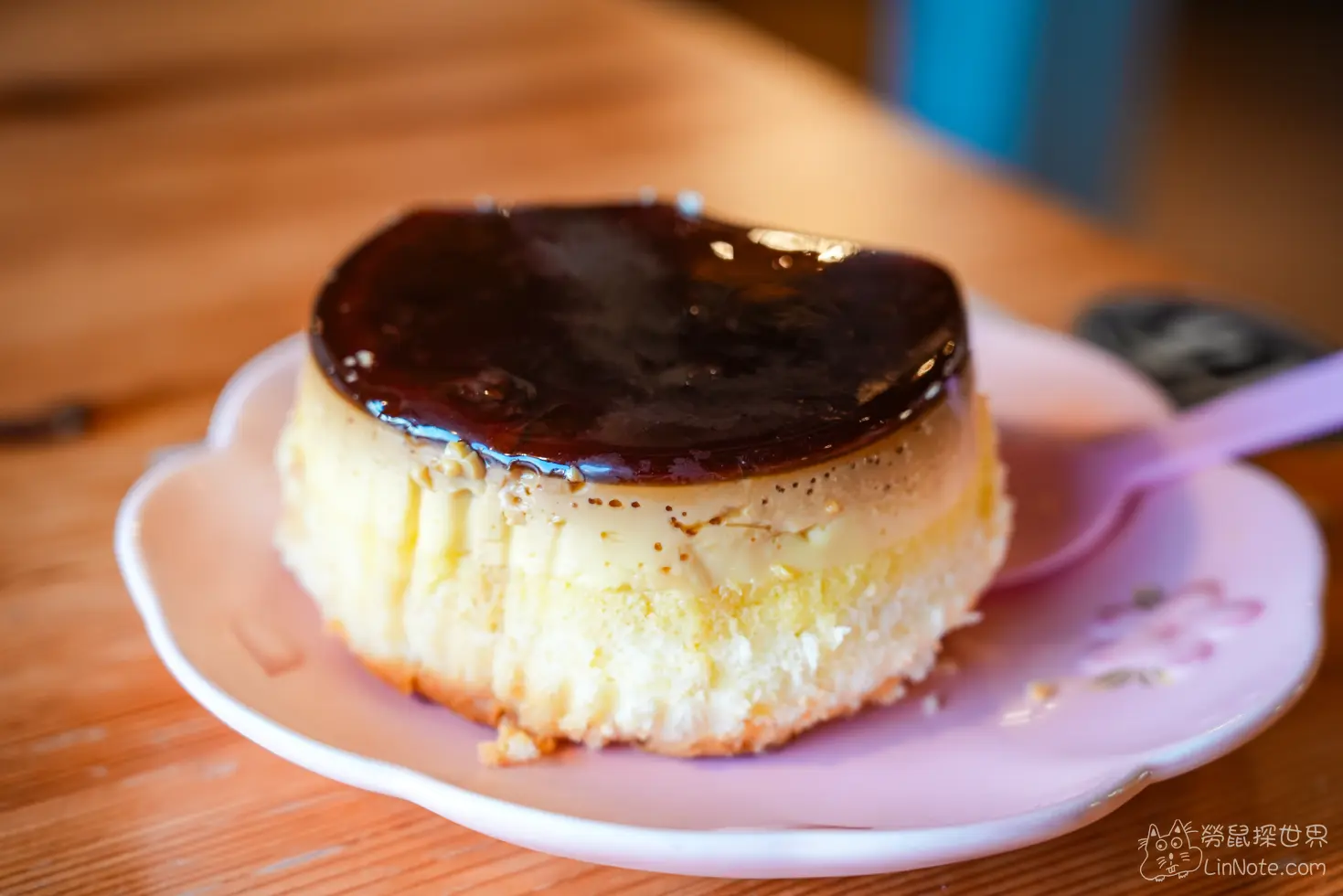 蛋糕並沒有算在低消中,不過我還是點了一塊來嚐嚐,蛋糕的大小大概有一個手掌大,下面是一般的戚風蛋糕,上面加了整塊布丁,布丁很滑嫩,蛋糕也有舒潤度,整體味道還不錯,不過稍微有點甜,比較建議配個咖啡之類的。