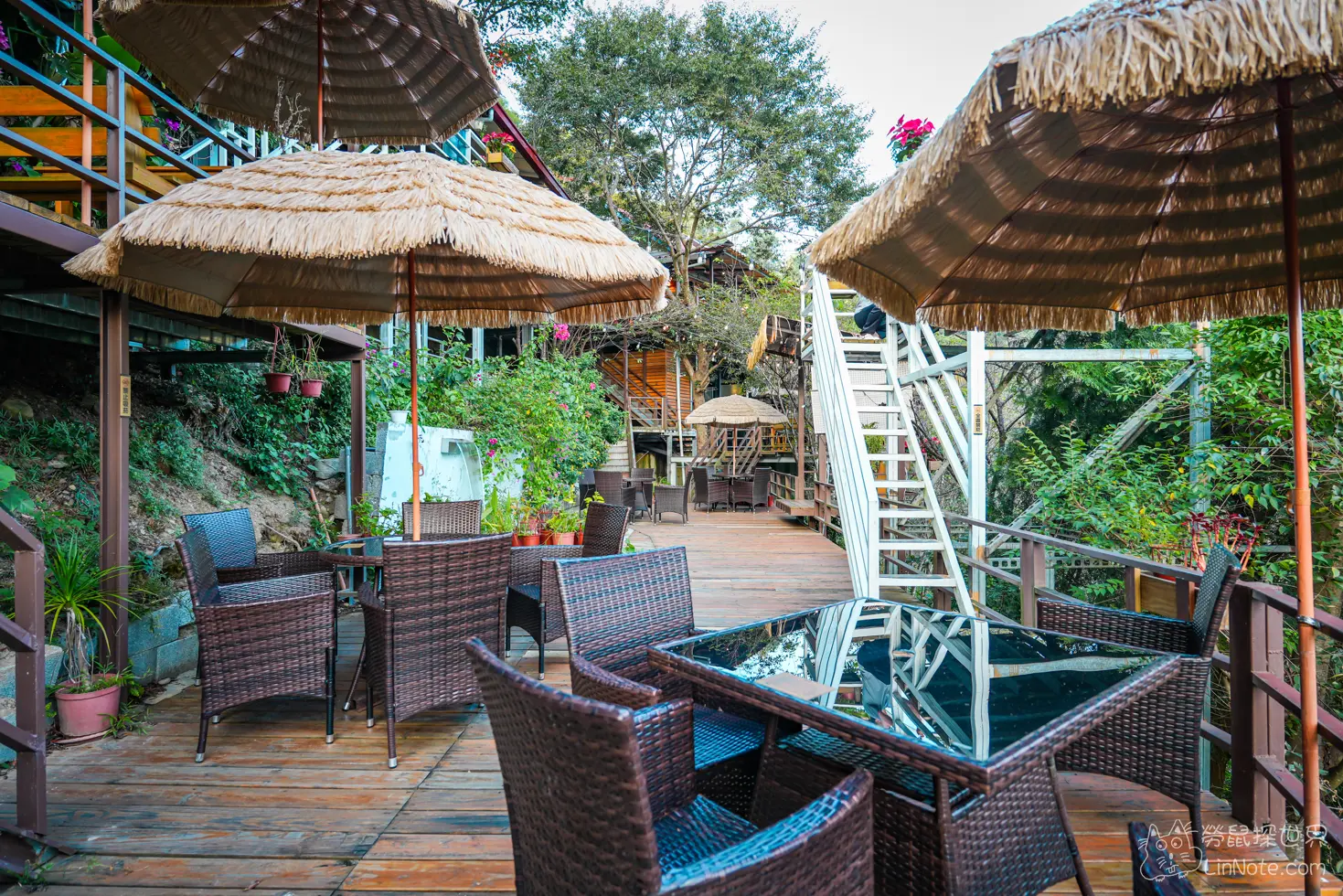 室外還有許多巴厘島風格的遮陽傘,很有異國感。