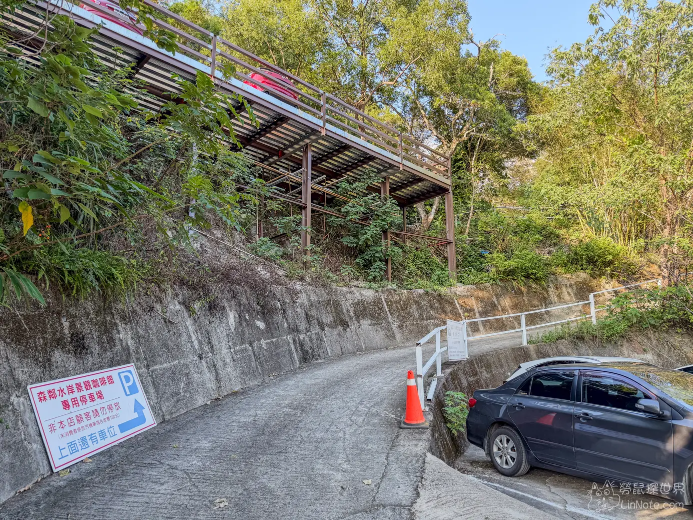 開到森鄰水岸景觀咖啡館就會看到許多停車位,我們覺得一開始看到的停車位最好停,如果這裡看到車位的話,不要猶豫,直接停。
