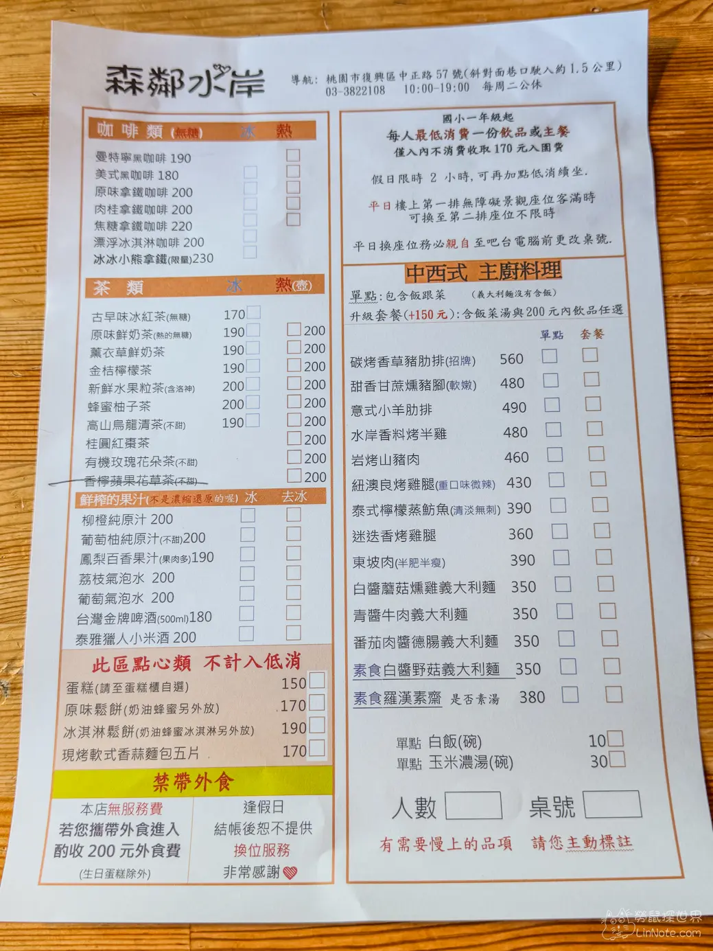 森鄰水岸景觀咖啡館菜單價位