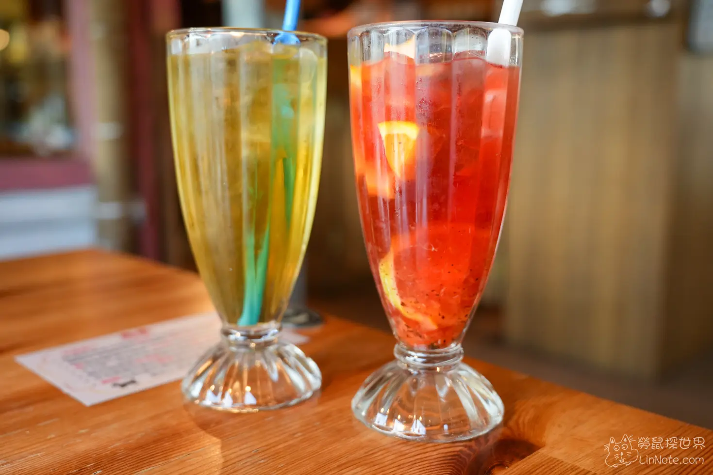 高山烏龍清茶的茶味道還不錯,整體喝得到茶的甘甜香,不過稍微有點淡。新鮮水果粒茶則偏酸甜,有洛神花與柑橘香,色彩繽紛也很適合拍照打卡,小孩也容易接受。