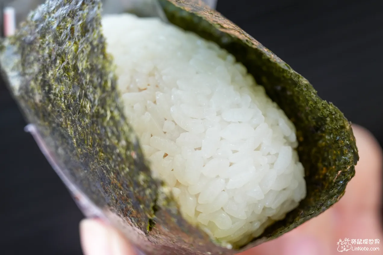 秋飯糰最特別的地方就是他的飯是使用醋飯,所以吃起來會有一點酸酸的口感,但他的醋選用日本進口的醋,比台灣的醋味道更柔和順口,所以飯糰的酸感吃起來很提味,但又不覺得太搶戲。