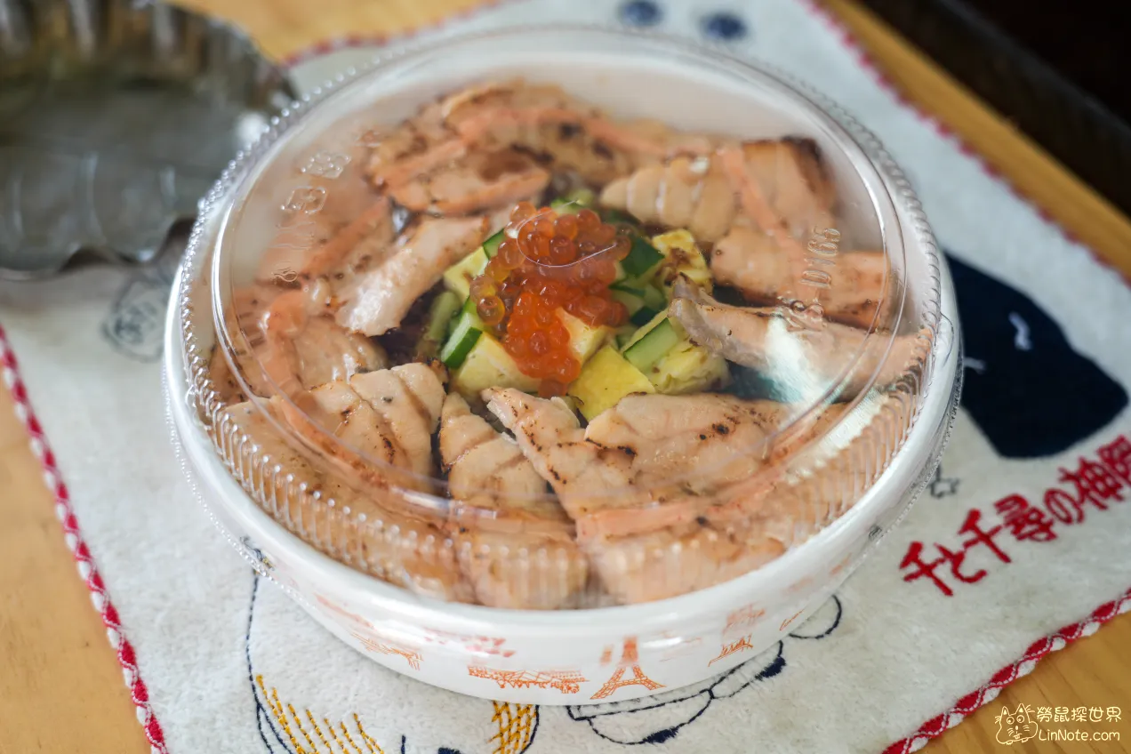 炙燒明太子鮭魚醋飯的鮭魚真的非常多,滿滿的鋪滿整個飯盒,用料一點都不手軟,而且鮭魚也是有厚度的,擠上一圈明太子醬,真的令人食指大動。