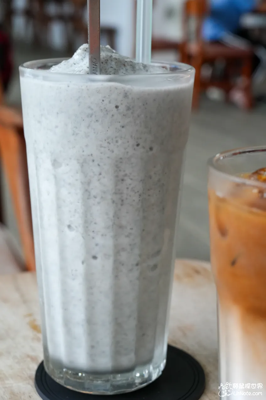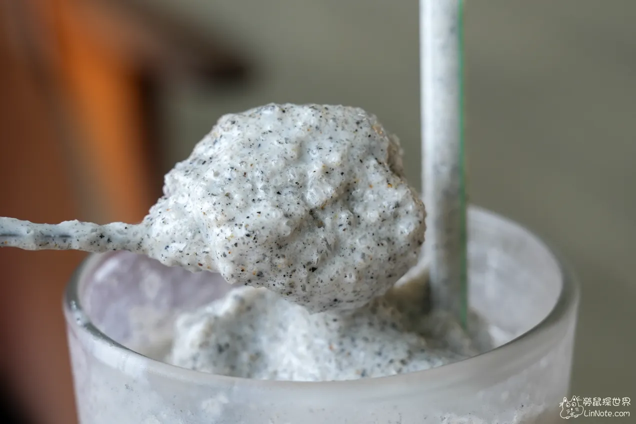 芝麻香蕉冰沙非常濃,感覺香蕉應該加得滿多的,冰沙都有一種泥狀感,喝起來非常有飽足感,每一口都是濃濃的香蕉味,芝麻感覺也加得很大方,濃濃香蕉中帶有滿滿的芝麻,這一杯真的超讚。