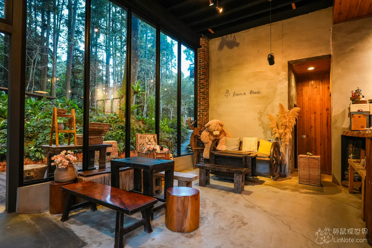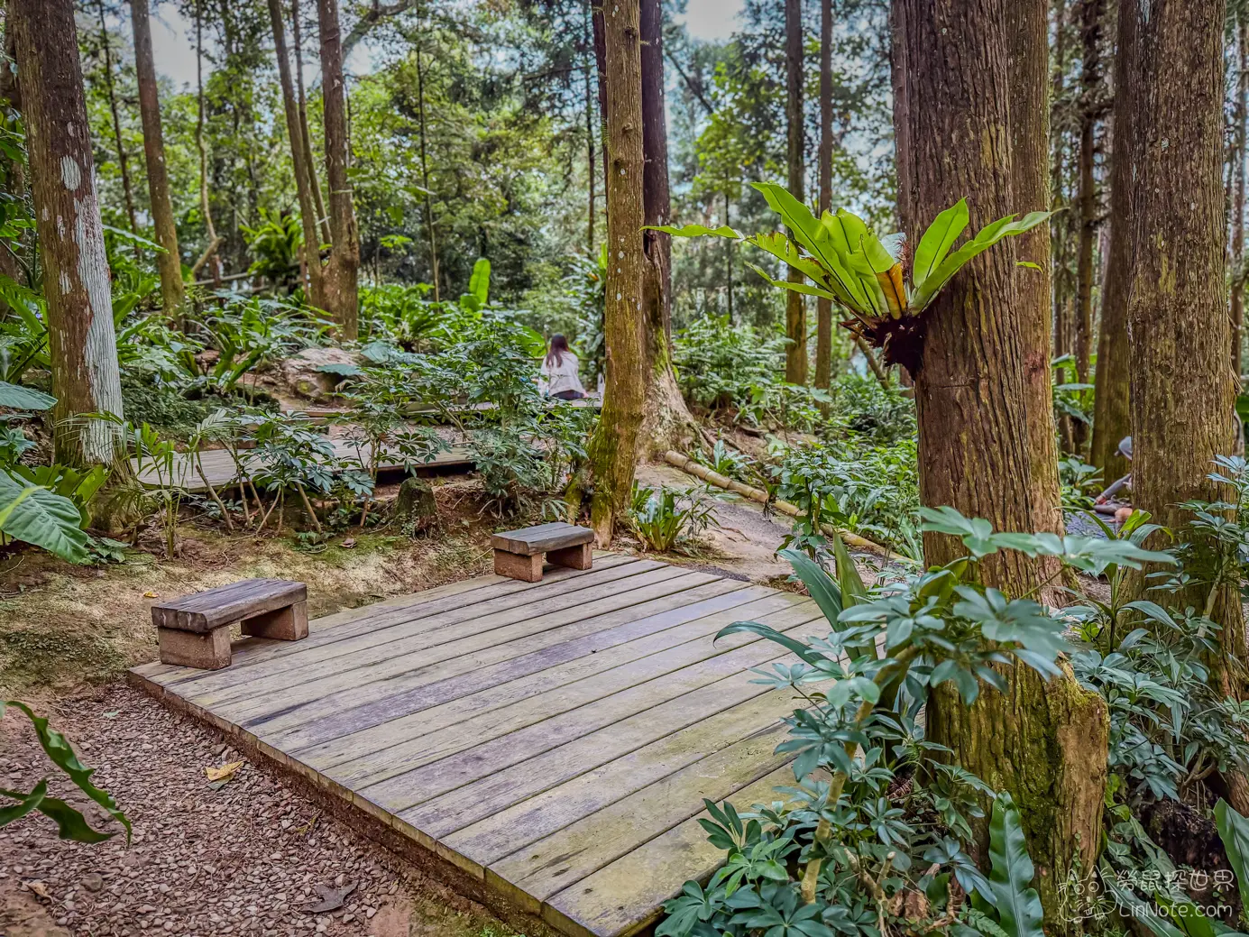 用餐區域散佈在這片杉木林裡,沿著曲折的小道,可以找到心儀的位置,享受芬多精及美食的組合。