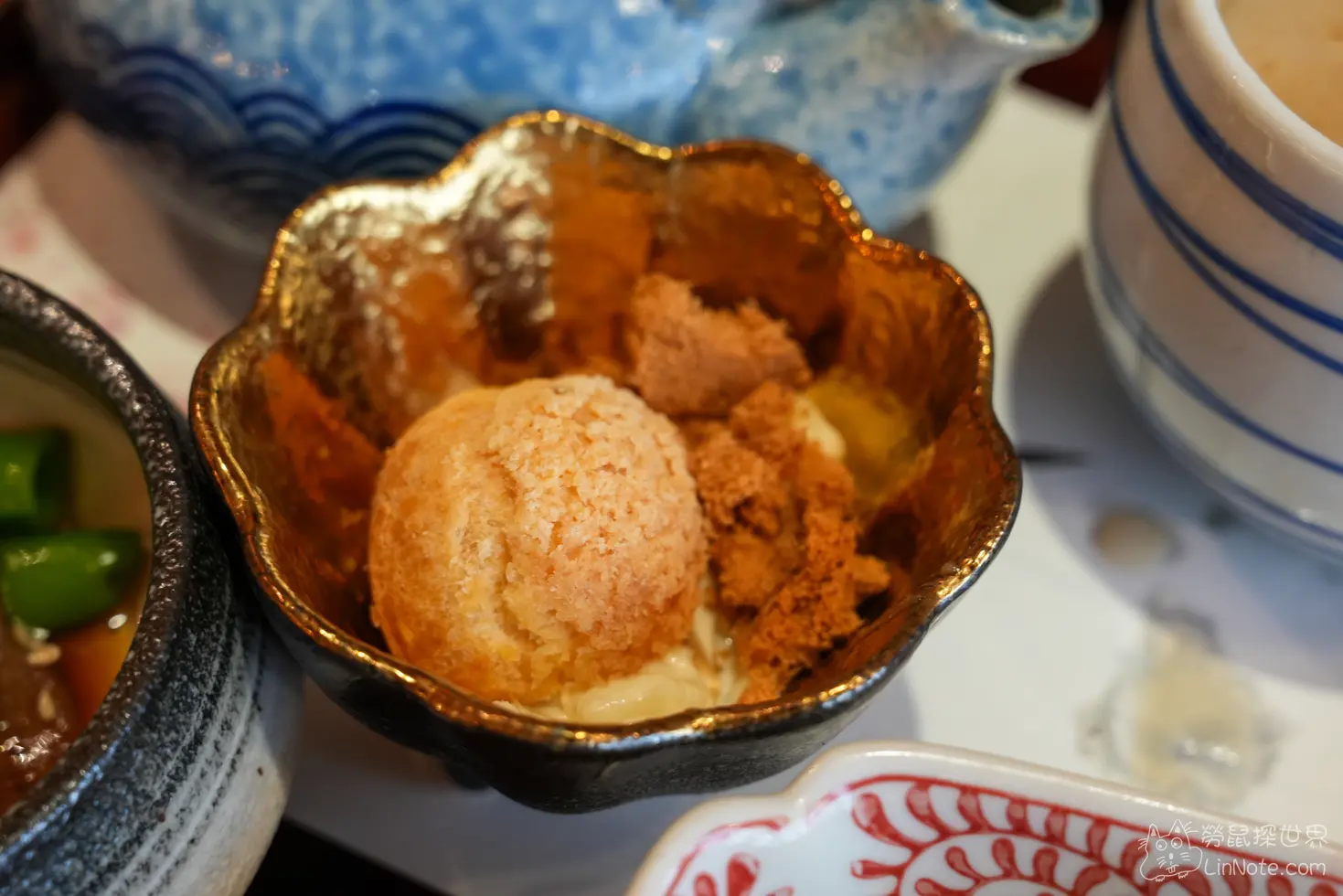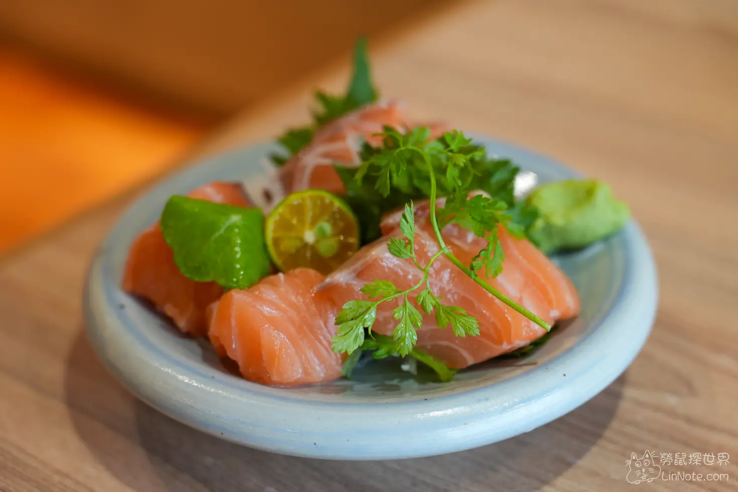 鮭魚刺身除了非常新鮮,入口時竟然帶有一股淡雅的酒味,感覺是用清酒微醃過,那股清香讓魚肉的鮮甜層次更高了。