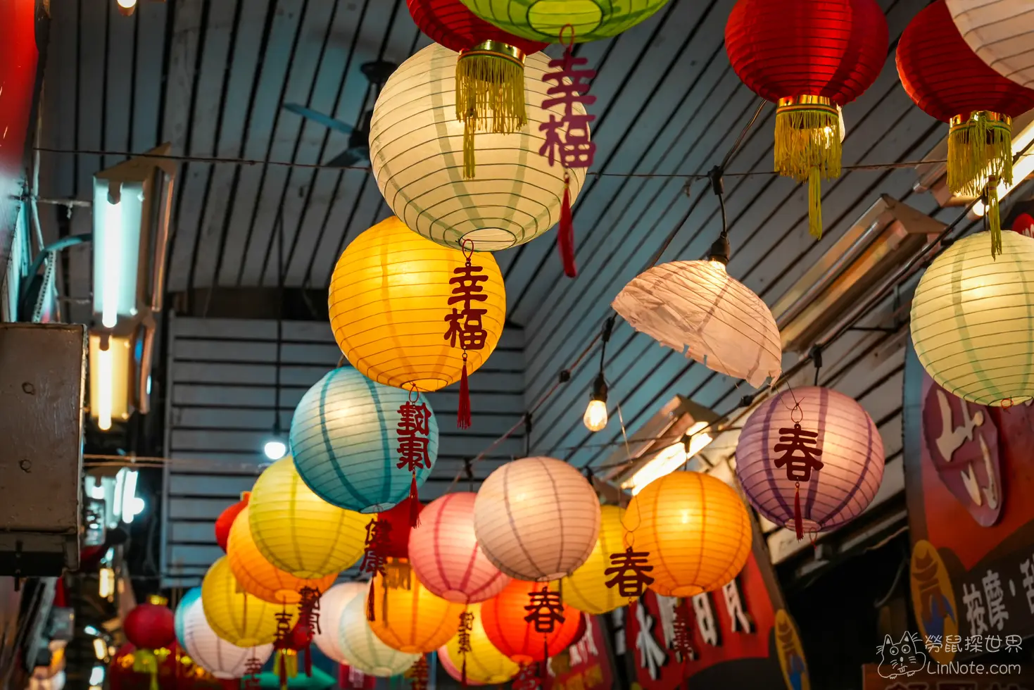 商城上方掛滿五顏六色的燈籠,非常美麗,裡面的街道真的很像穿越道30-40年前,招牌散發濃厚復古風情,不過我們抵達時已是晚上八點多,因此多數商店皆已打烊,不太清楚這裡還有沒有在營業。