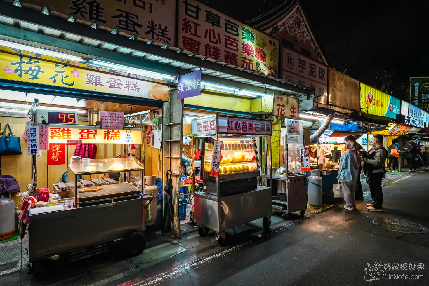 除了城隍廟內部小吃街,廟口外圍也聚集了眾多人氣攤販。這一區以『邊走邊吃』型的小吃為主,如香氣撲鼻的芋泥球、現烤雞蛋糕等都是新竹夜市熱門排隊美食,是感受新竹夜生活的絕佳選擇。