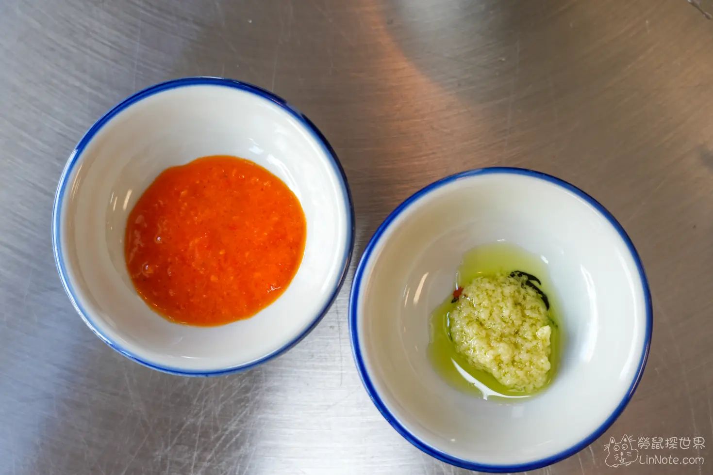 綠色的醬是青蔥、大蒜、薑以及麻油,味道有點像是燒臘店便當上面的油蔥,有點淡淡的鹹香卻又非常提味。