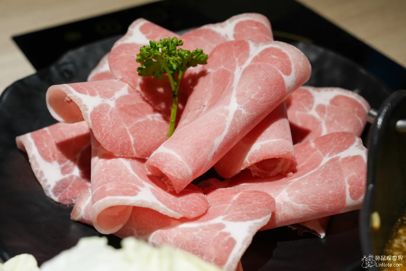吃前幾片的時候可能是我煮太久,稍微有一點點柴,後來涮一下有熟透馬上拿起來吃可以吃得出來滿彈牙的,但以六百多的價位來說,豬肉甜味不如預期。