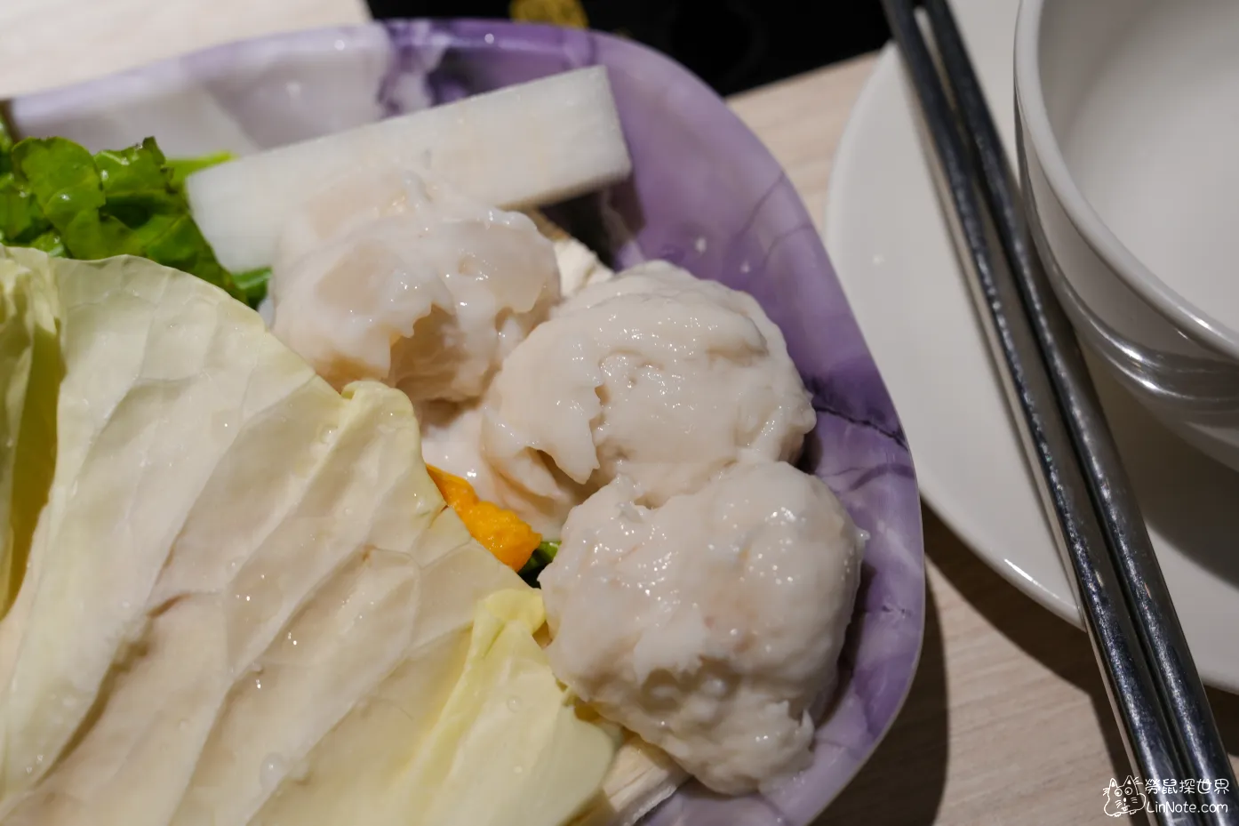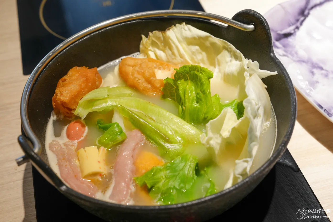 而吃最多的還是左下角的花枝滑了吧,除了新鮮之外還可以吃到切丁的花枝,我吃了8球以上吧🤣口感跟味道跟竹南鍋全滿像的,但這裡可以吃到飽,很讚。