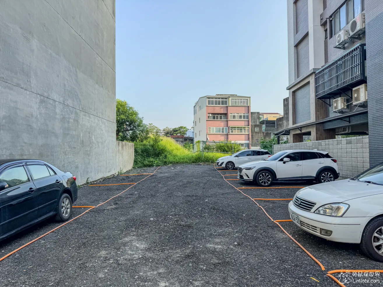 可能是比較趕的原因,路面上簡單用橘色的水管弄出停車格,不知道這是不是臨時的還是之後都是這樣。
