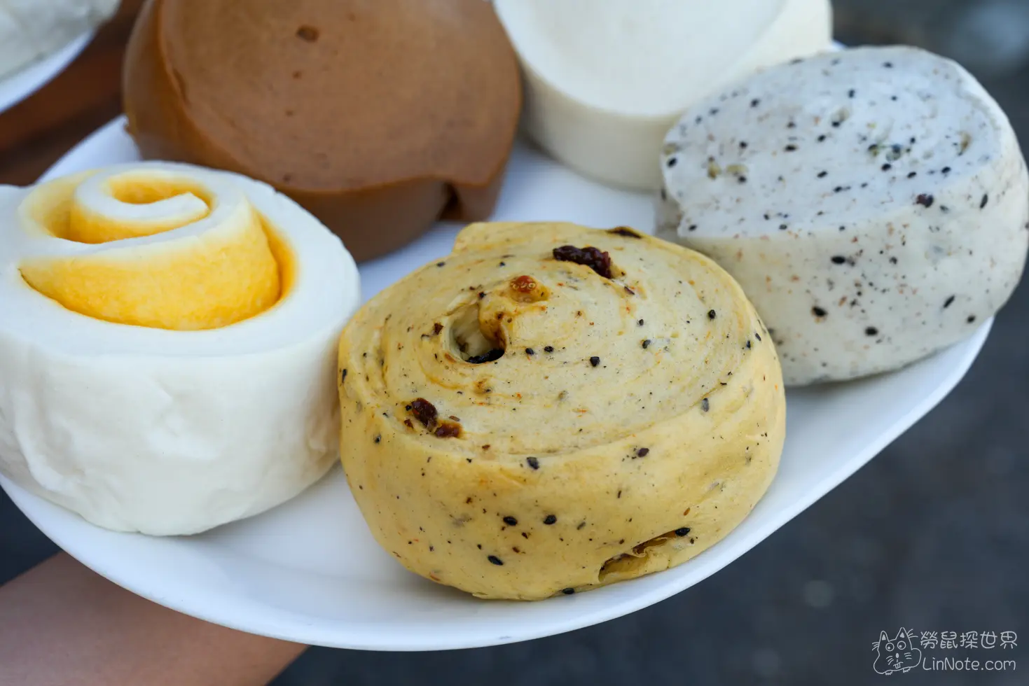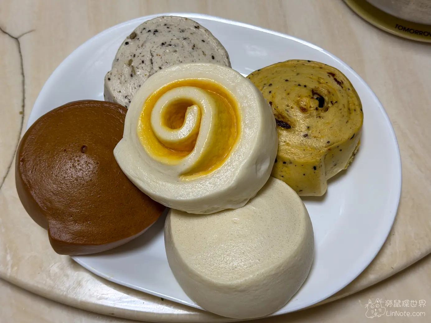比較特別的枸杞饅頭,吃起來有淡淡的枸杞香,裡面是真的看得到、吃得到枸杞。